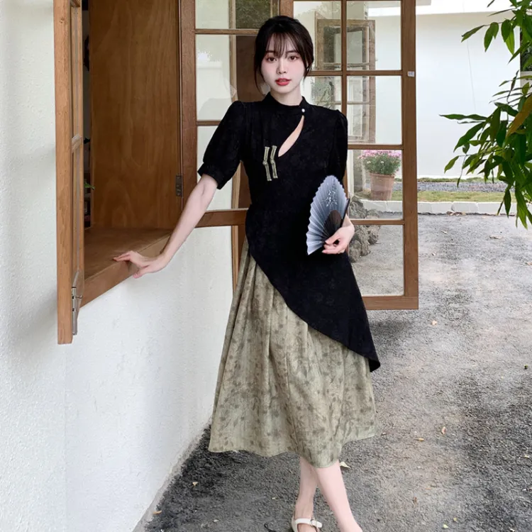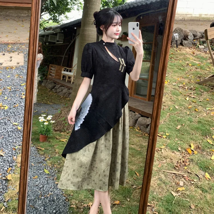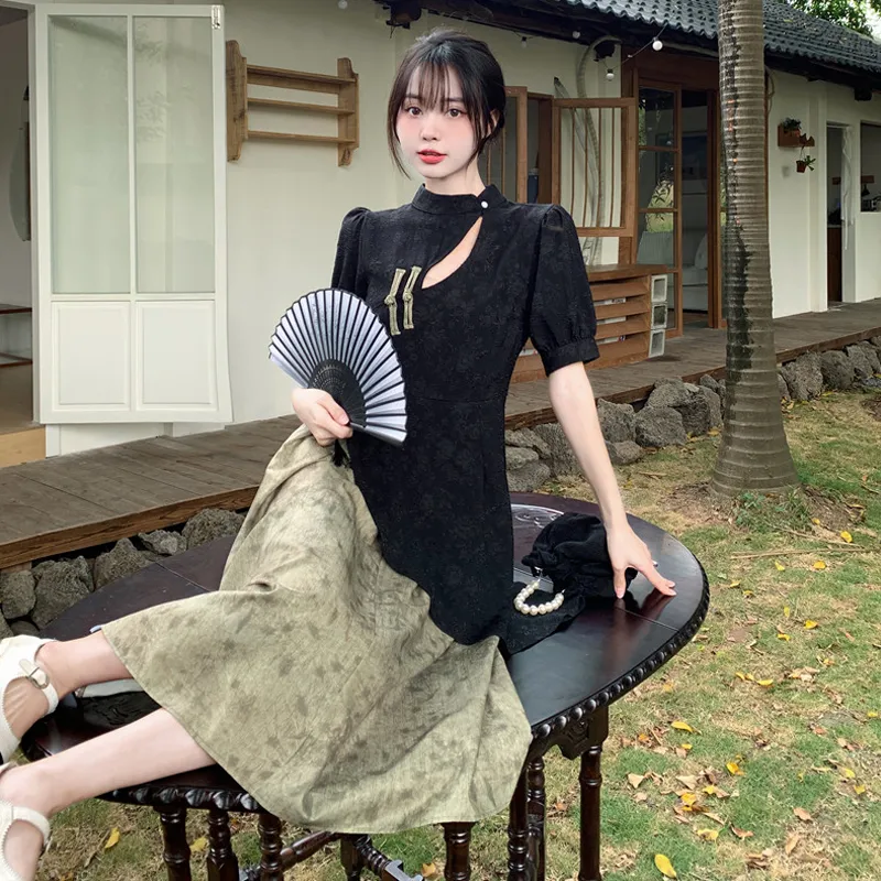 JOSR Короткий рукав Платье Женское Черное