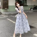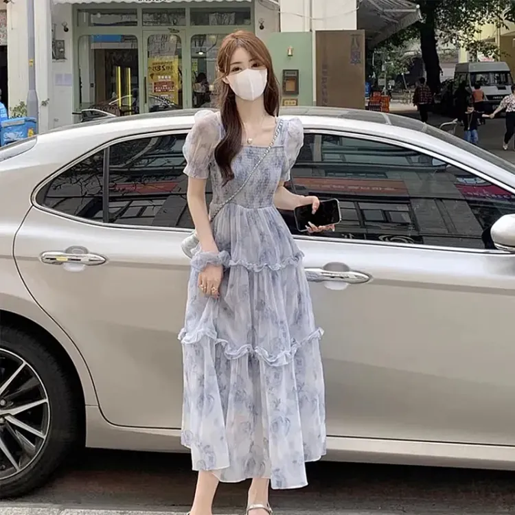 JOSR Короткий рукав Платье Женское Синее