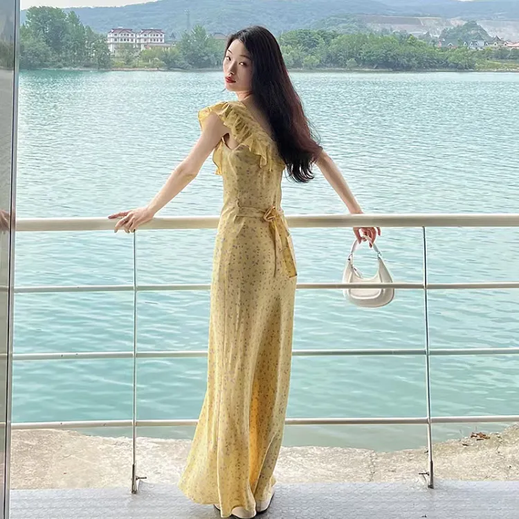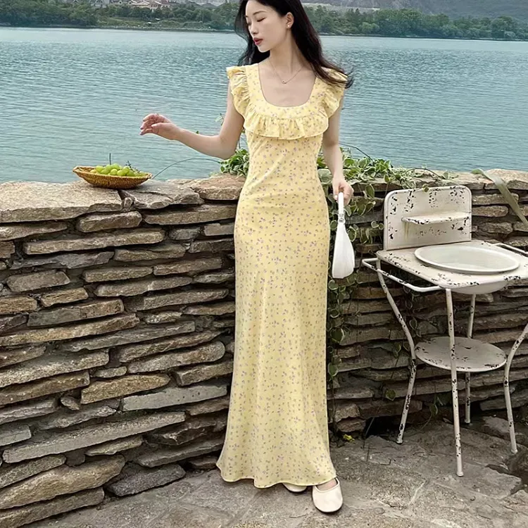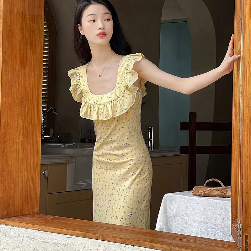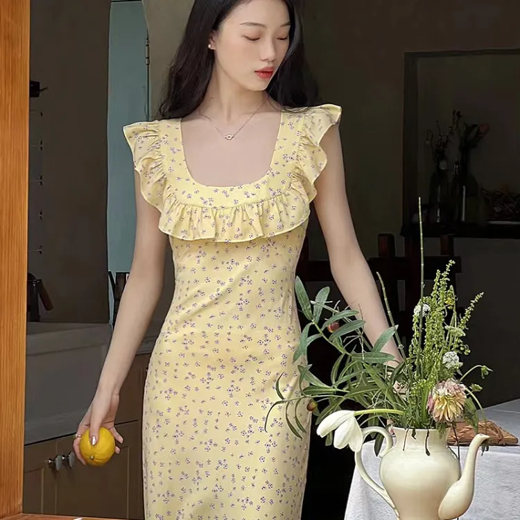JOSR Короткий рукав Платье Женское Желтое