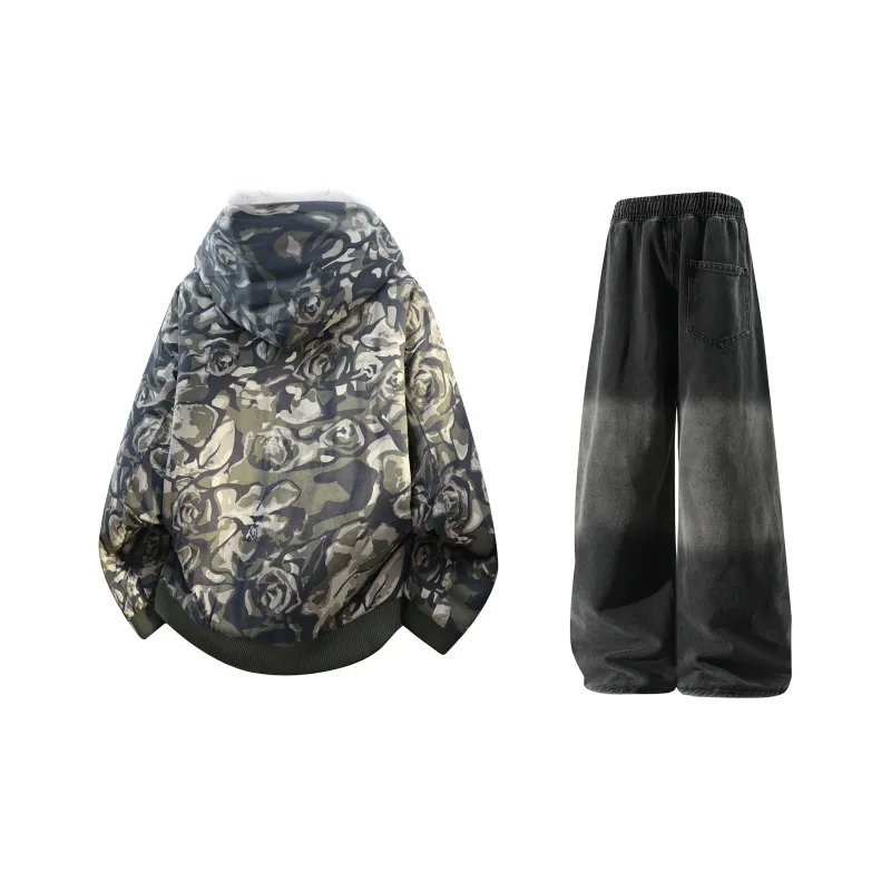 Комплект:Камуфляж + Черный Джинсы с Флисовой Подкладкой