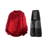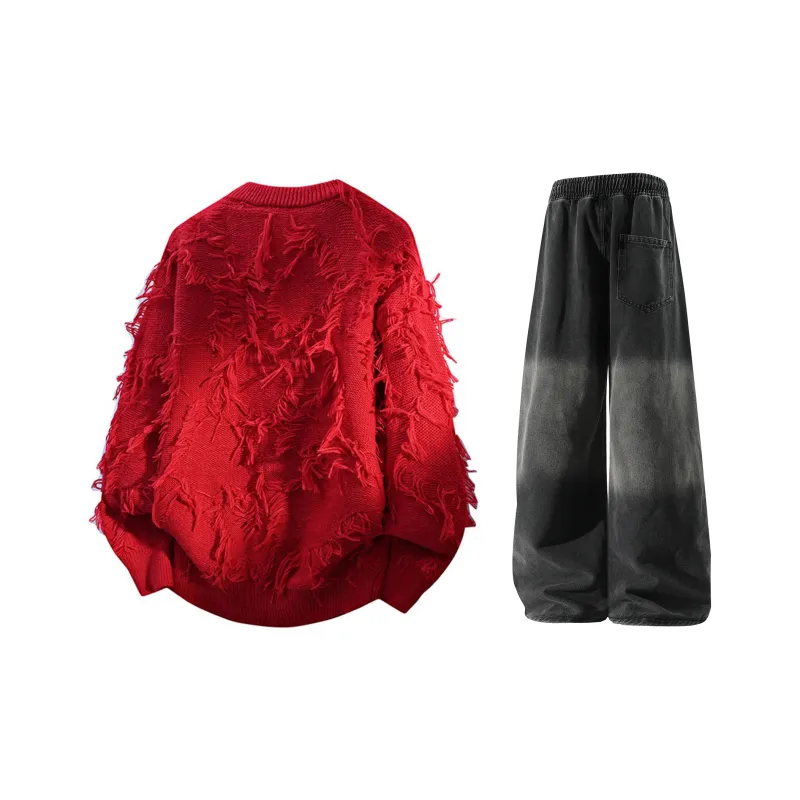 Красные + Желтые Грязные Джинсы с Флисовой Подкладкой