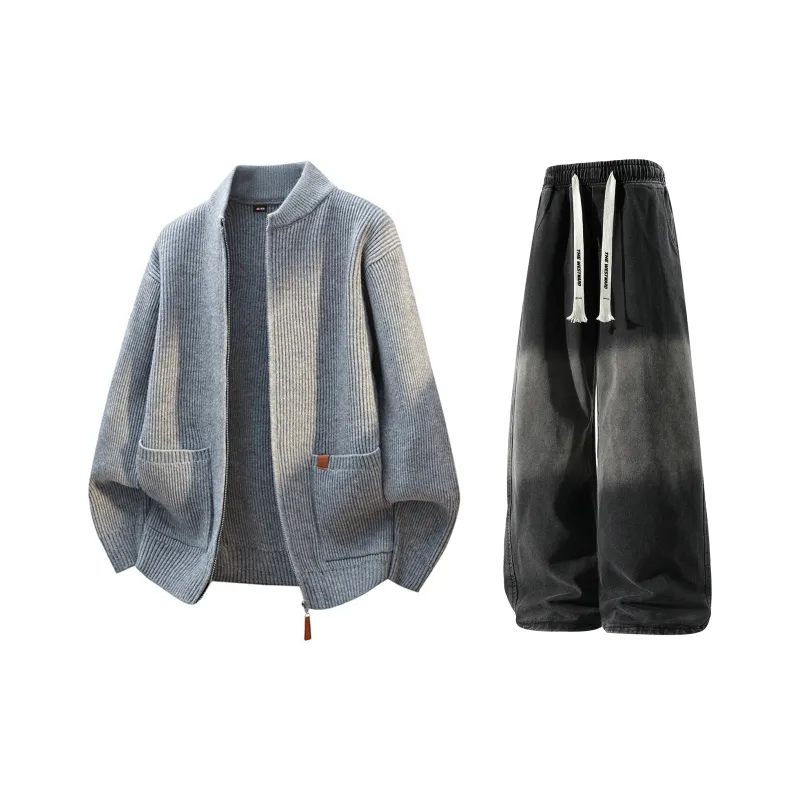 Комплект:Серый + Черный Джинсы с Флисовой Подкладкой