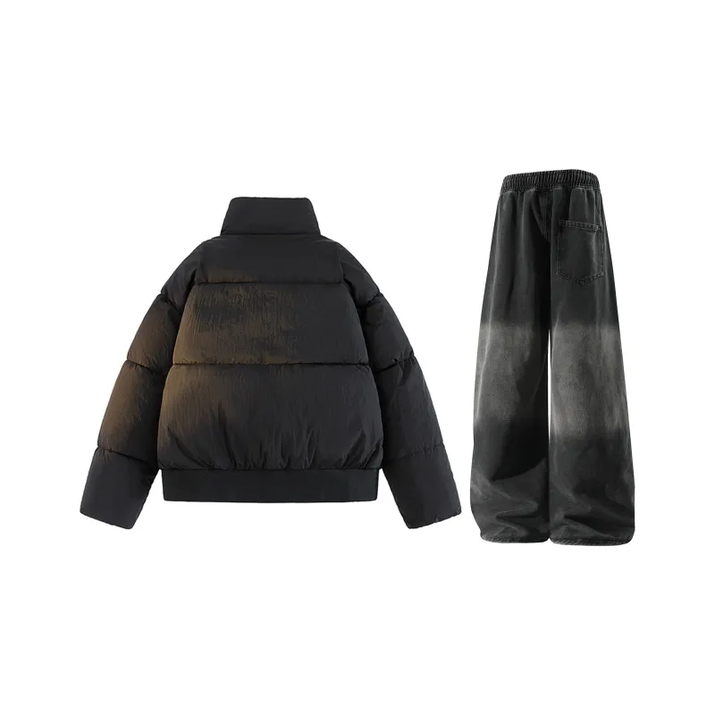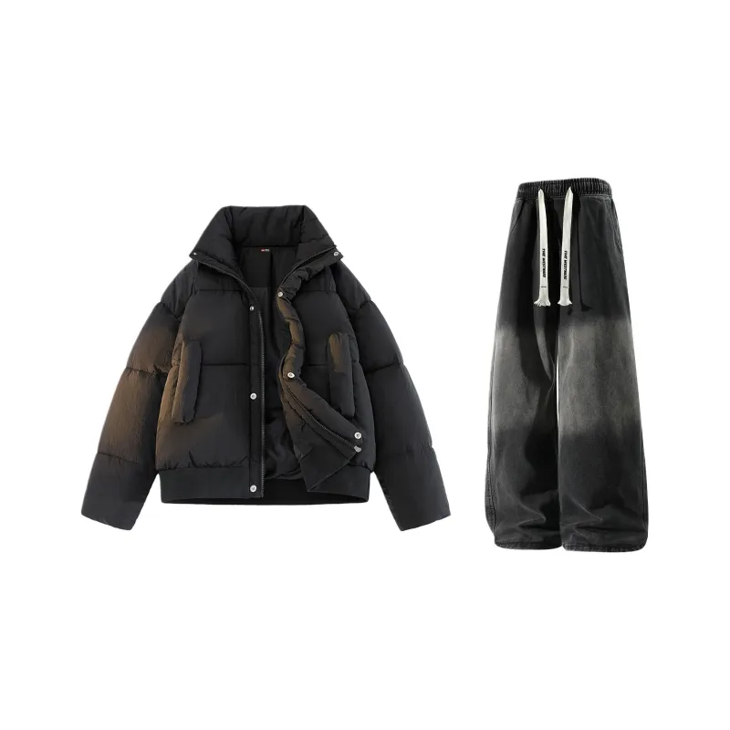 Комплект:Чёрный + Чёрный Джинсы с Флисовой Подкладкой