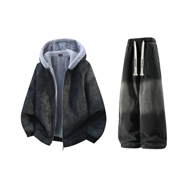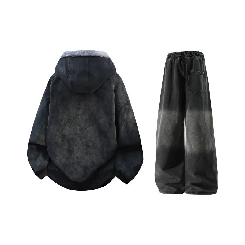Комплект:Чёрный + Чёрный Джинсы с Флисовой Подкладкой