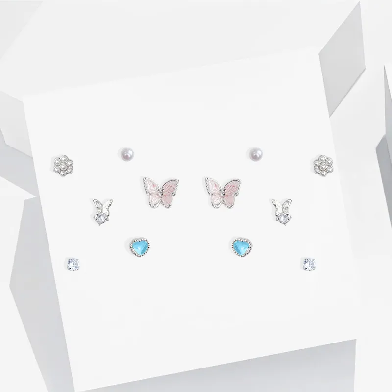 Стиль:Бабочка Geometric Stud Earrings Set Pink