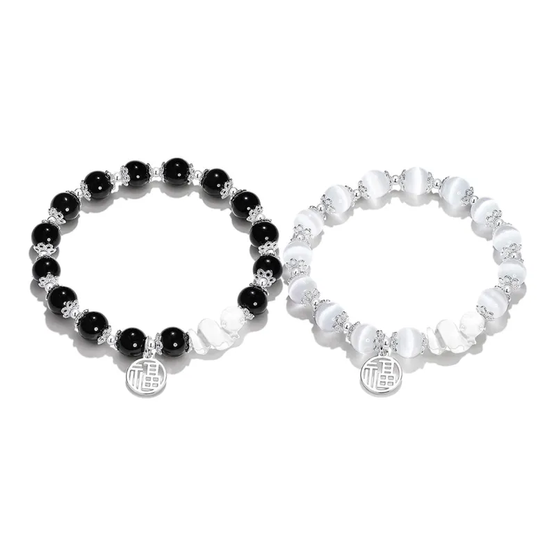 Браслет с бусинами "Благословение Змея" Пара [Черный + Серебряный]