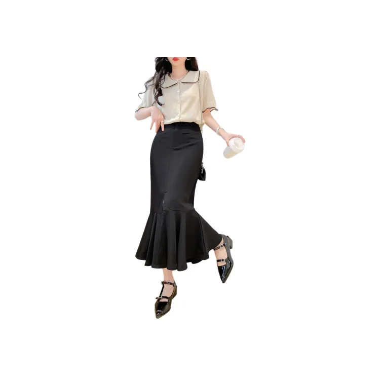 Juden Choi Повседневный Длинный Юбка Женские Черный