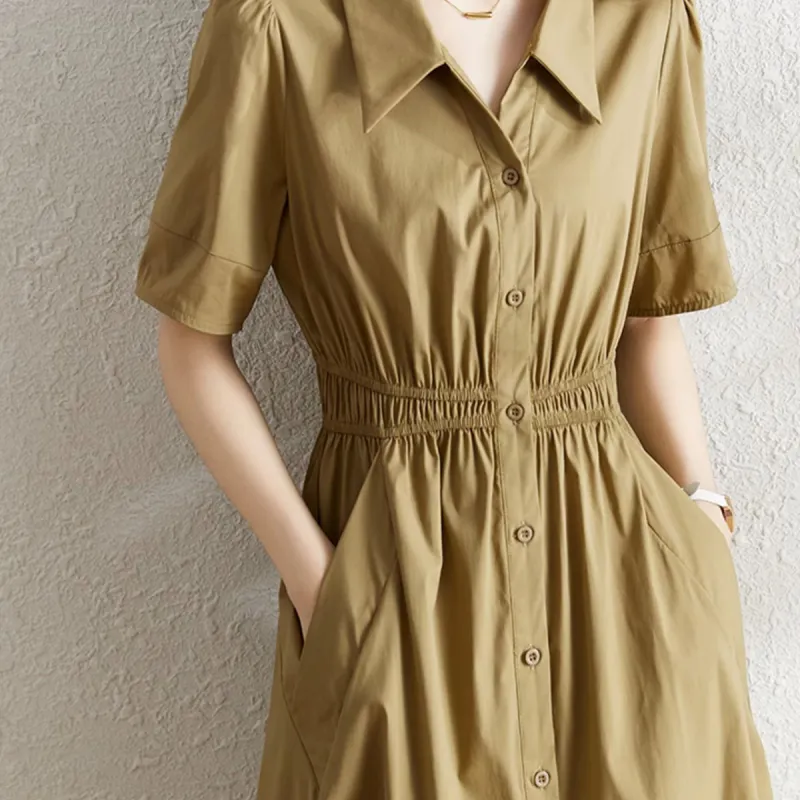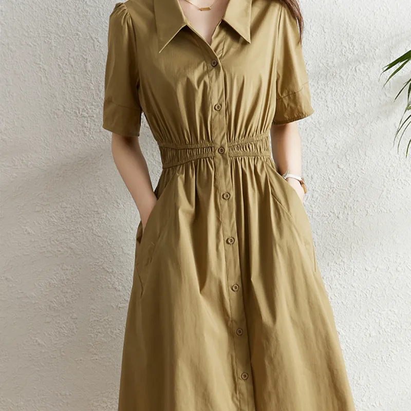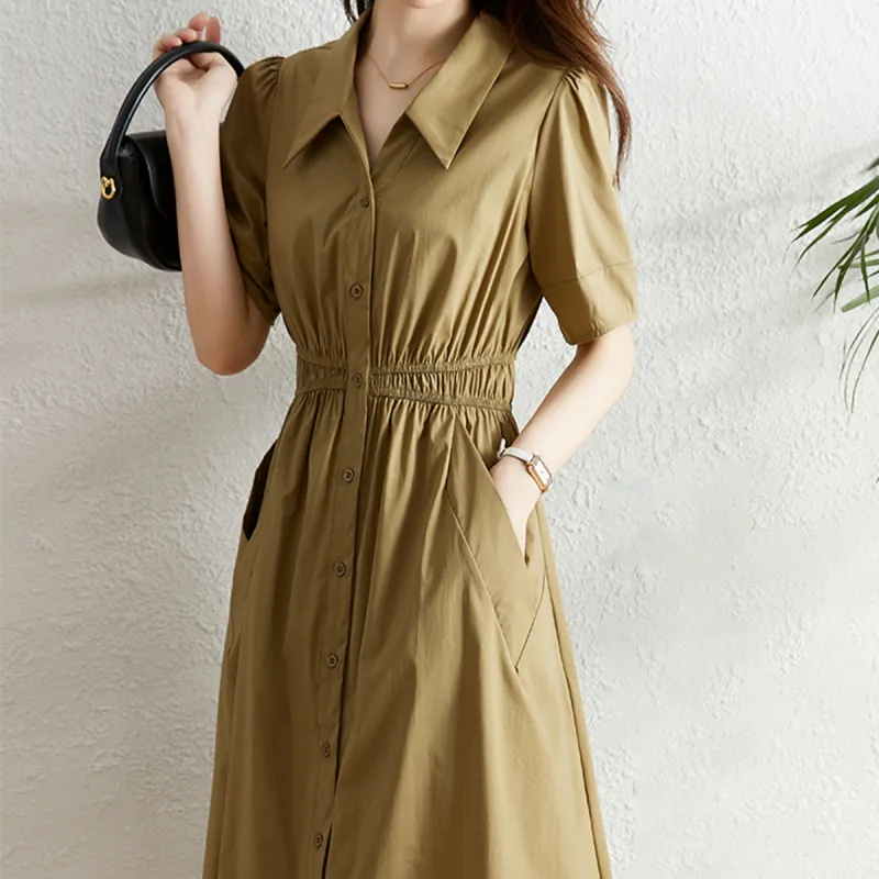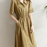 Juden Choi Короткий рукав Платье Женское Хаки
