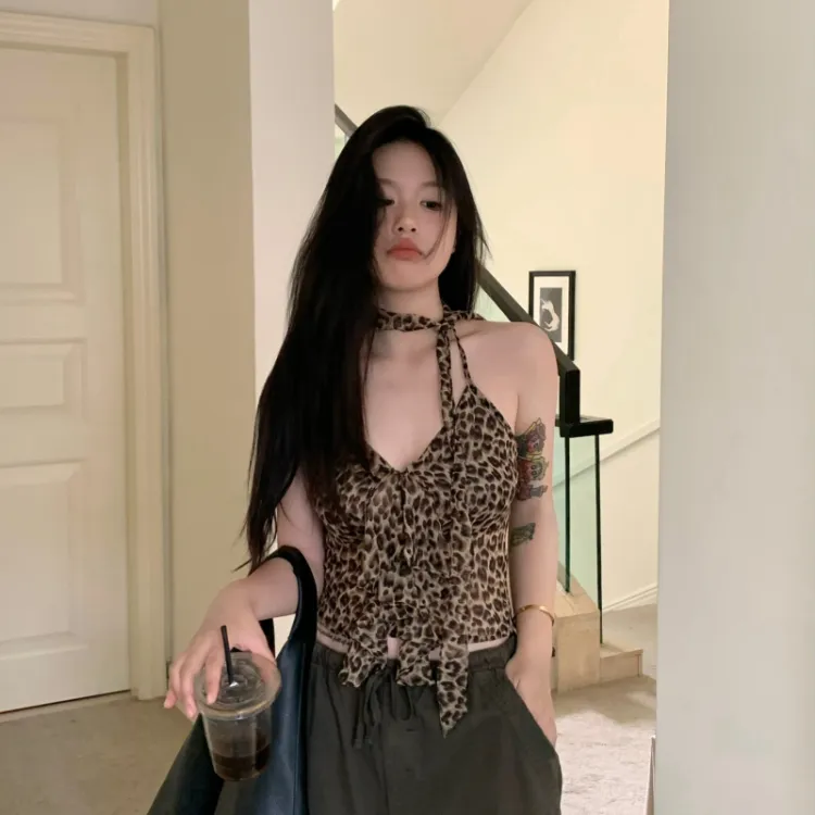 JUFU Майка Женская с леопардовым принтом