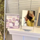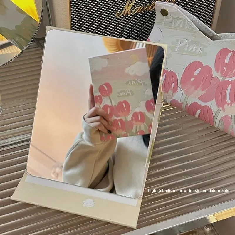JUJING GOOD Looking Foldable Small Mirror Makeup Mirror Portable Desktop Office Portable Makeup Tool Cute