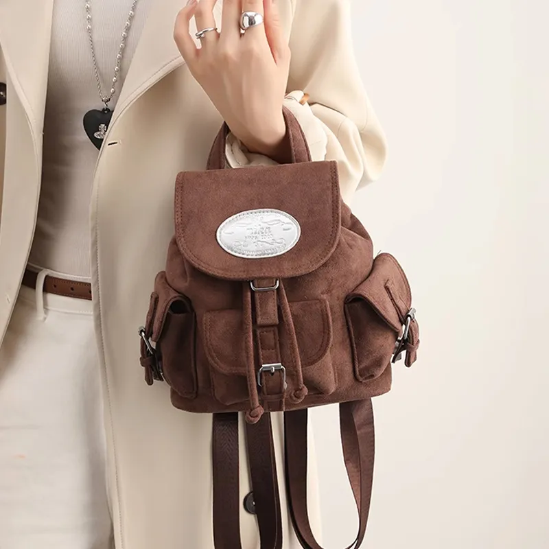 Juju Jimmy Замша Рюкзак Стандартный Женский Красный Кофейный