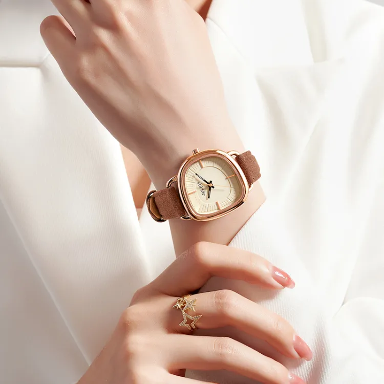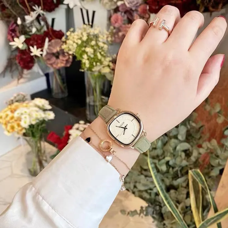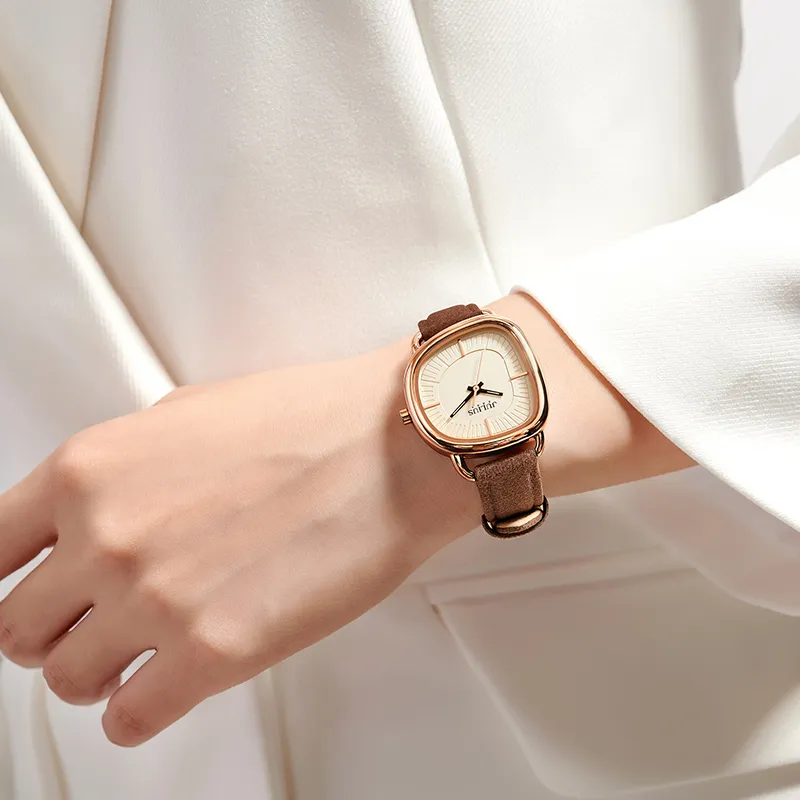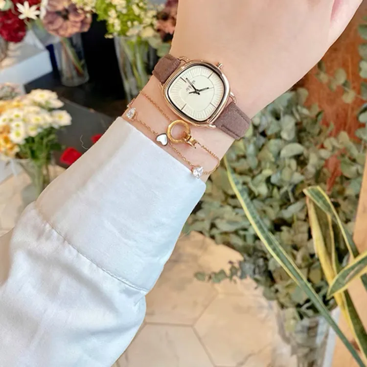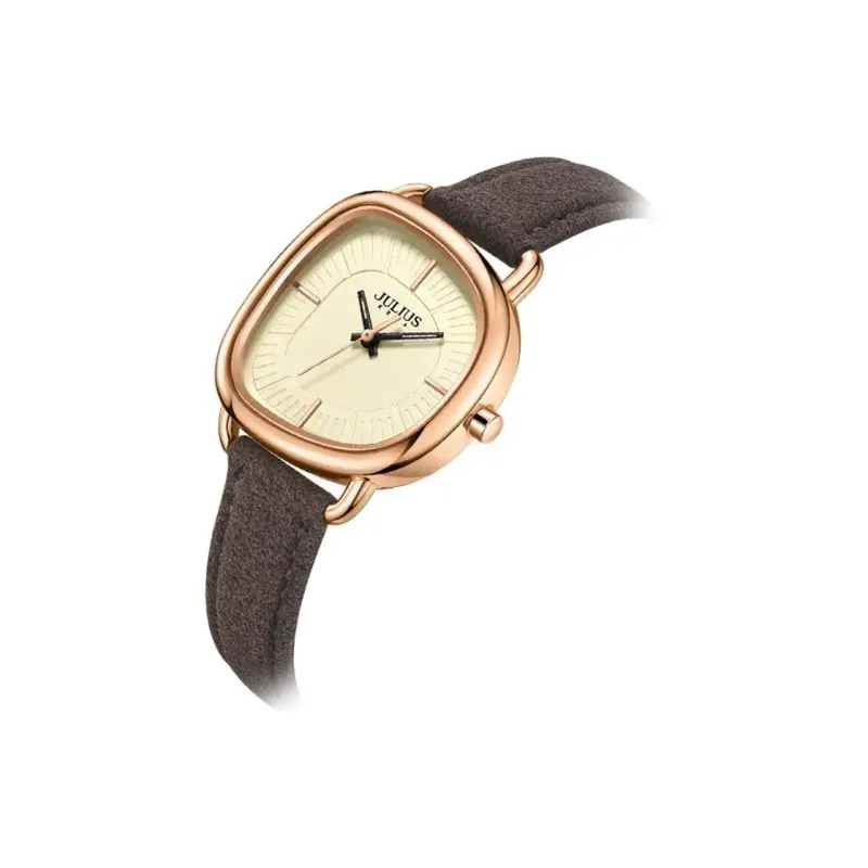 JULIUS JL Magazine Style Кварцевый механизм Кожаный ремешок Часы Женские часы Желтый циферблат