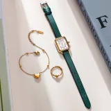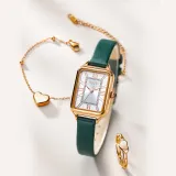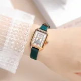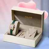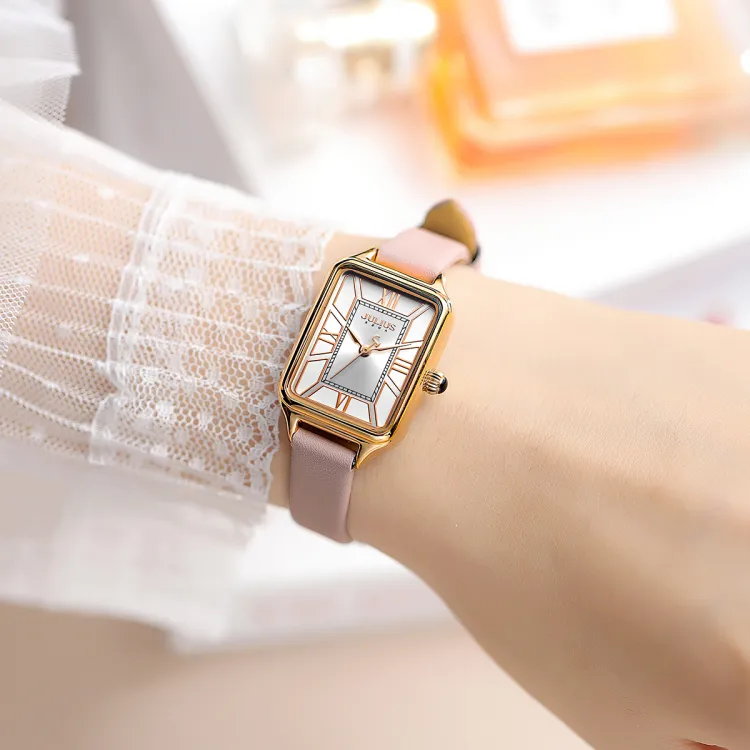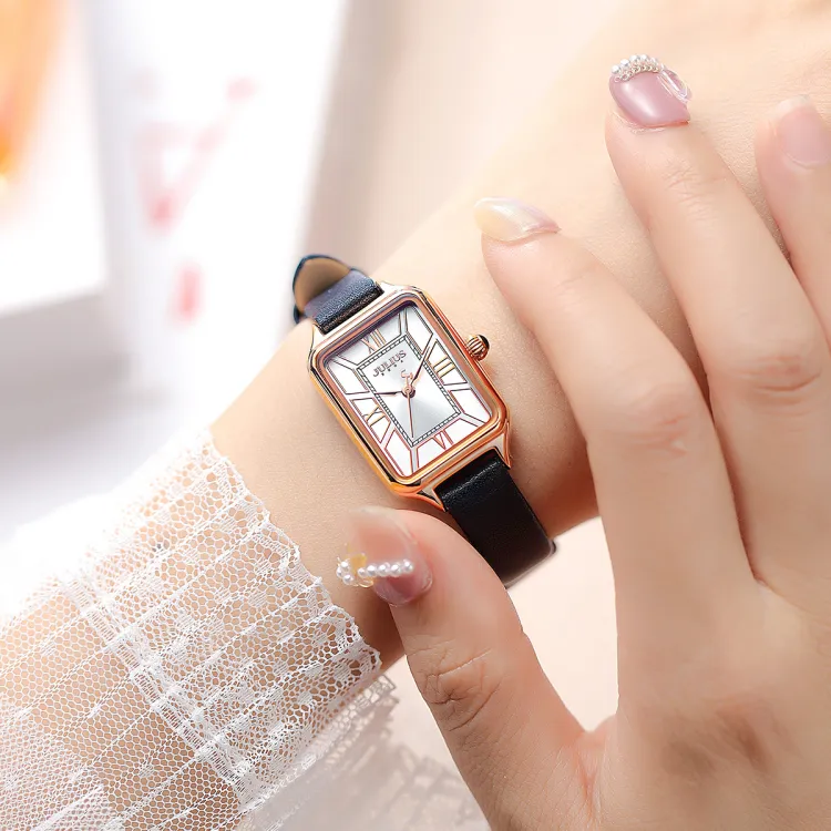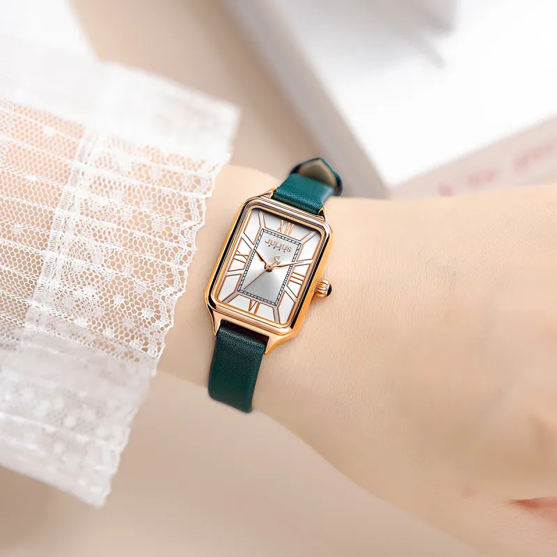 JULIUS JL Маленький Квадратный Таблиец Кварцевый Механизм Коровья Кожа Ремешок Часы Женские Белый Циферблат