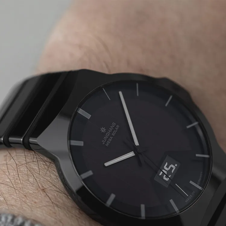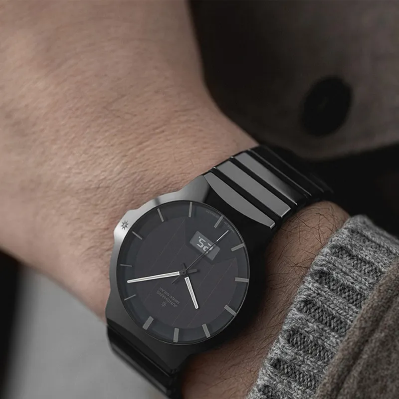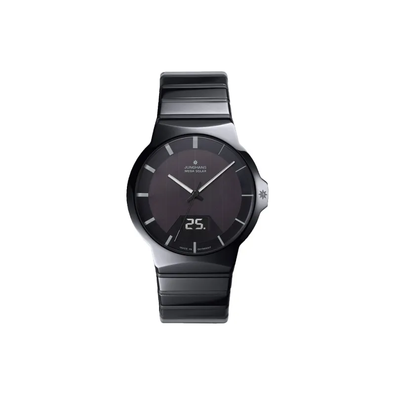 JUNGHANS Солнечный кварцевый механизм Мужские часы Часы 40,4 мм Черный циферблат Керамика Чехол часов Титан Ремешок