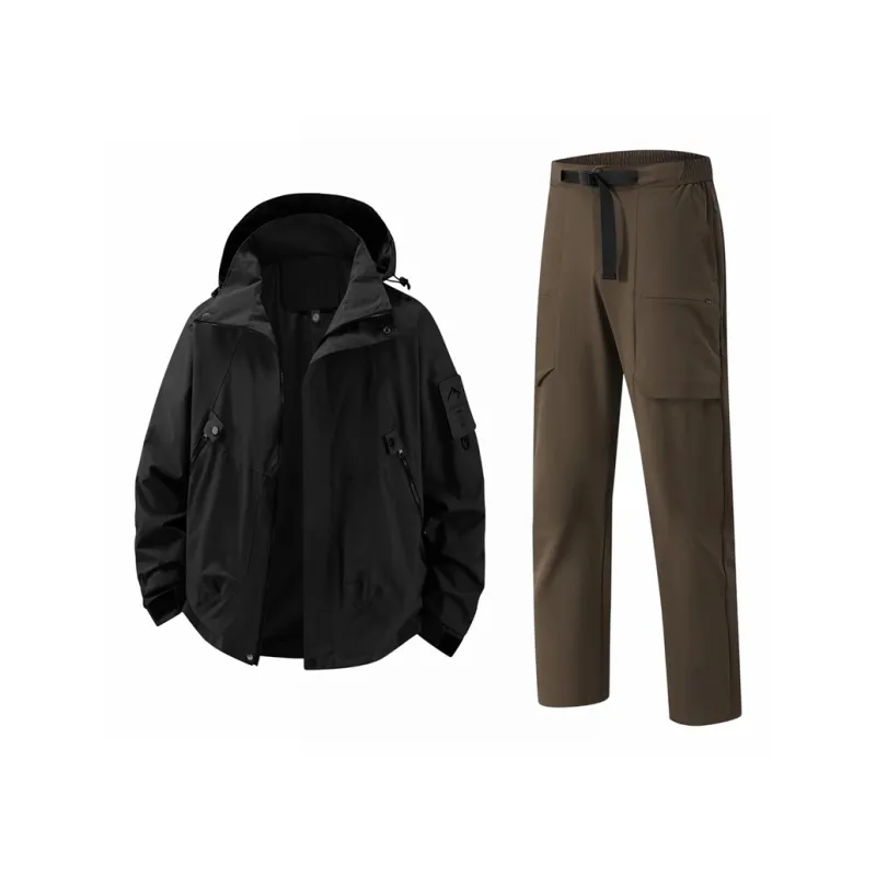 Комплект:Чёрное пальто + кофейные штаны