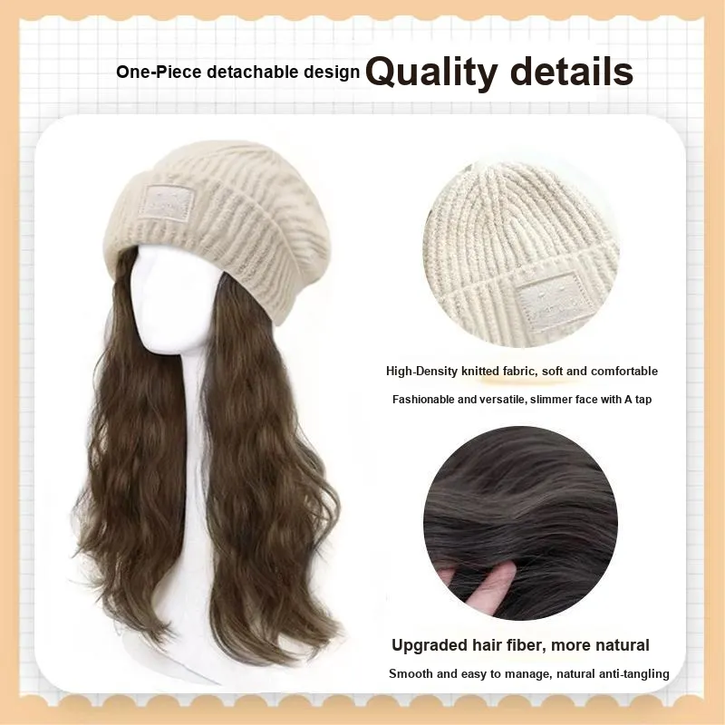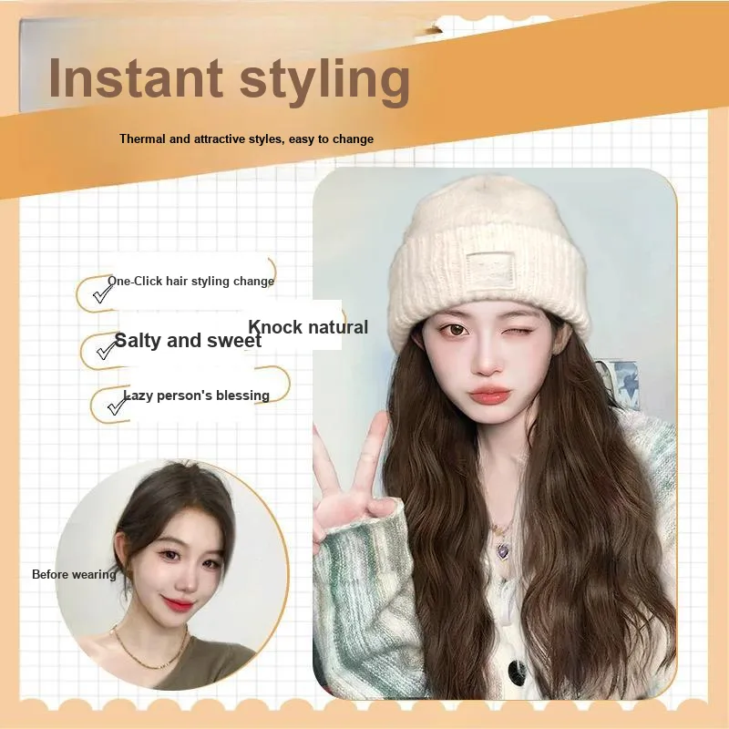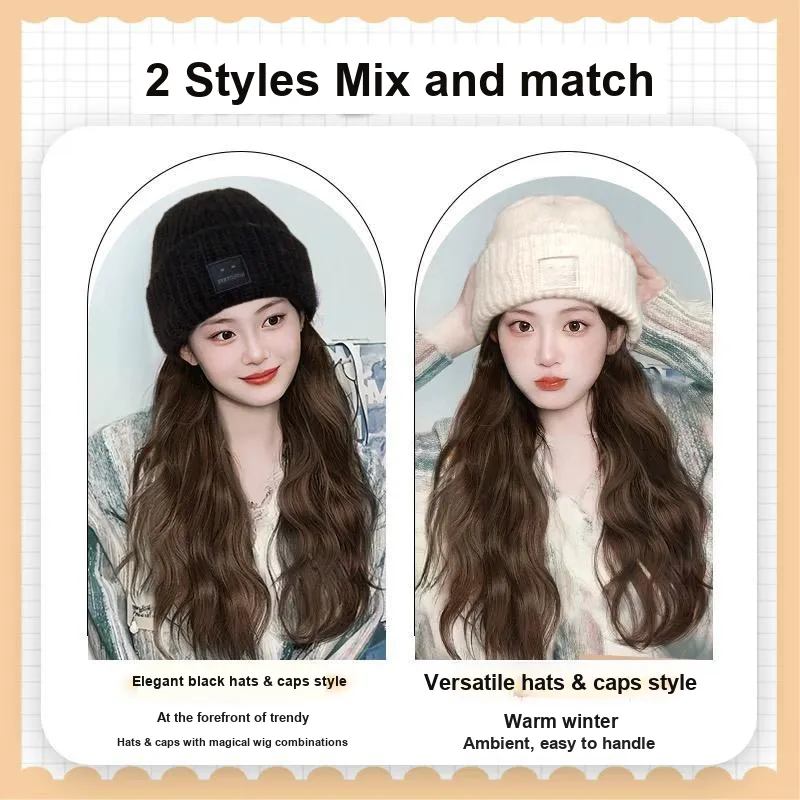 JUZIYE 2024 Осенне-зимняя вязаная шапка Барби Увеличение объема лица Уменьшение веса Шапки Кепки Перука Комбо