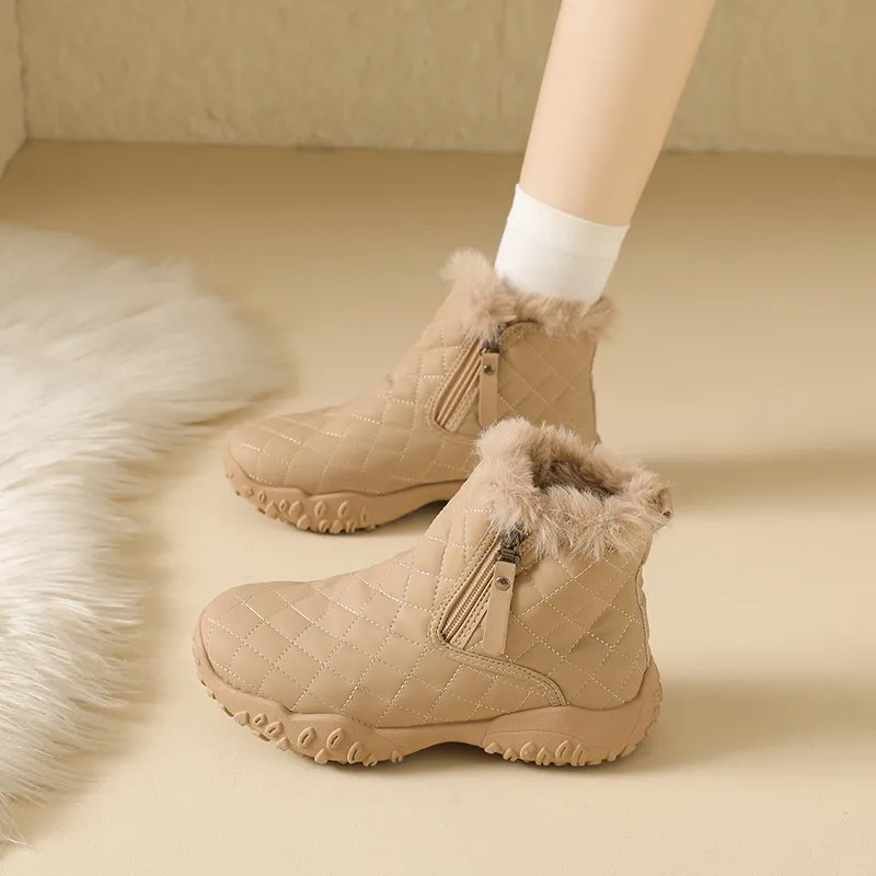 JX В клетку Узор Гранулярная Подошва Однотонный Снежные Ботинки Короткие Женские