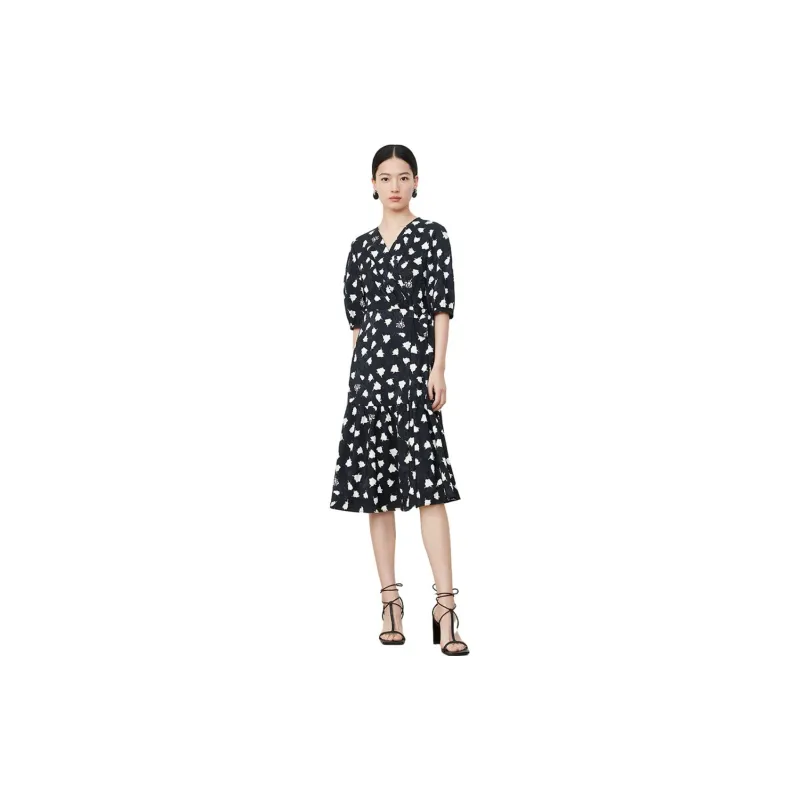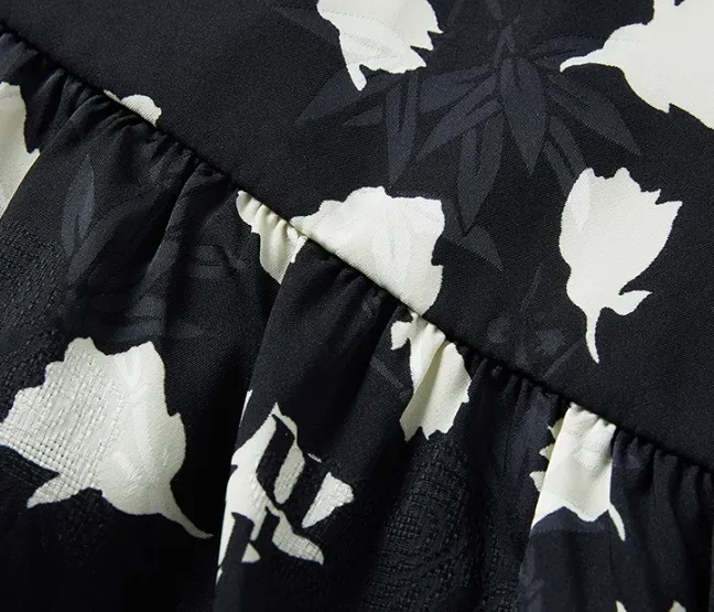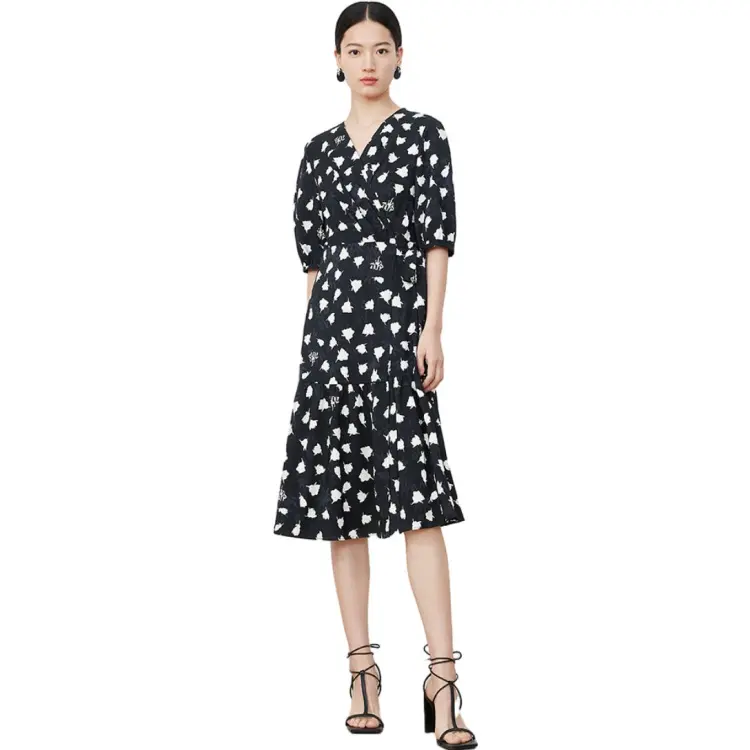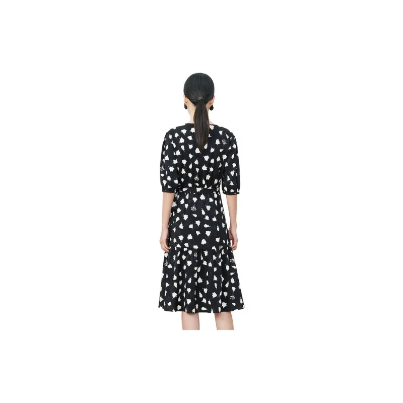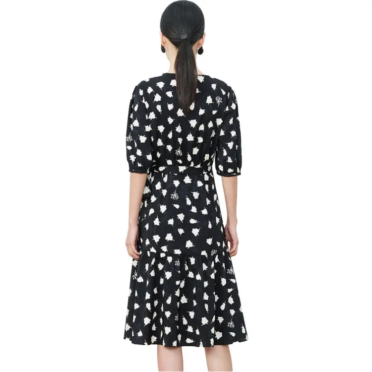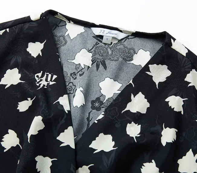 JZ. ANNAKRO Короткий рукав Платье Женское Цветочное Черное