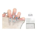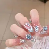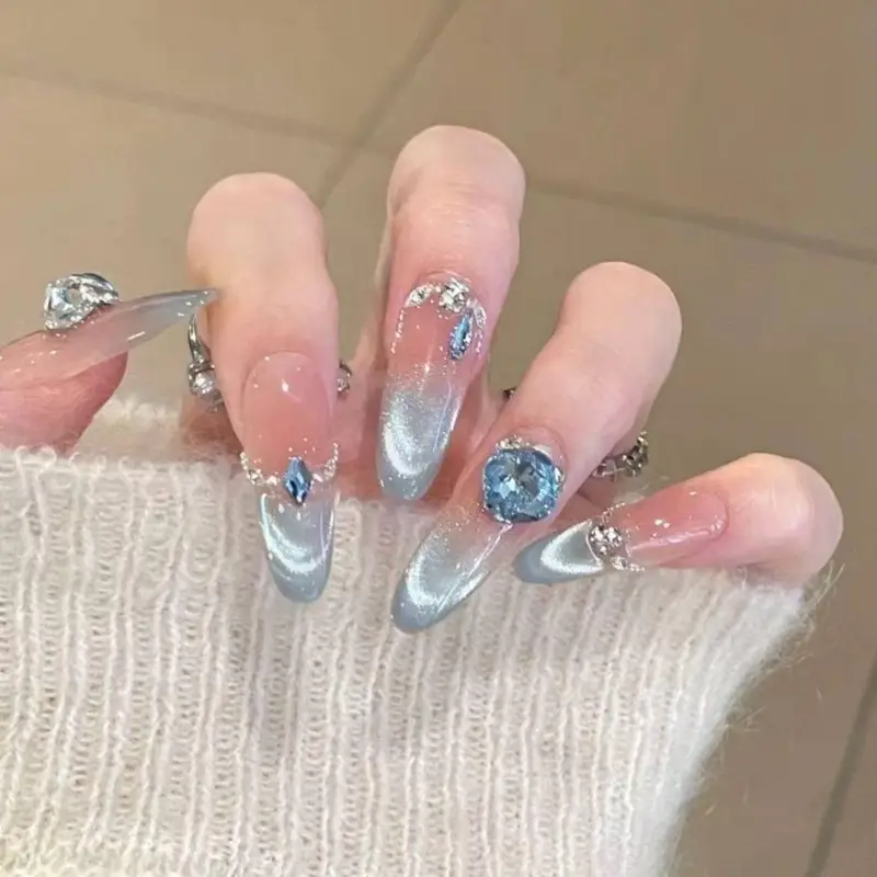 K'APEINE Синий лед Кристальный Handcrafted False Nail Маникюр Овал Длинный Синий Градиентный Французский