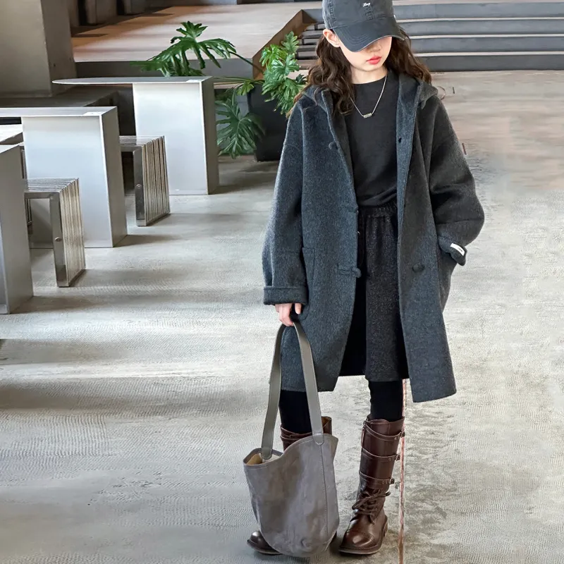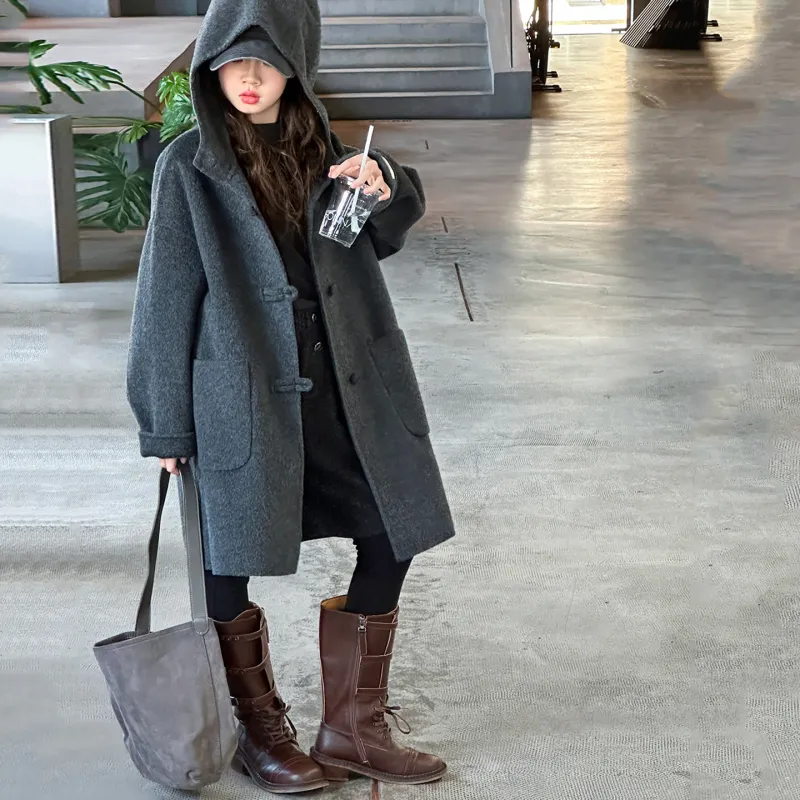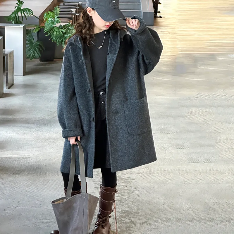 KAERFEITE Серый Школьный возраст Шерстяное пальто