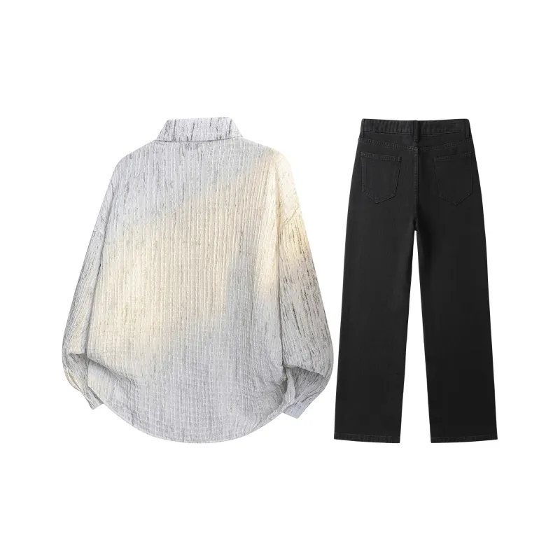 Комплект (Белая рубашка + Винтажные синие штаны)