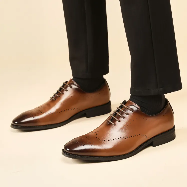 Kaltendin Коровья кожа Заостренный носок Винтаж BROGUE Броги Туфли Мужской Черный