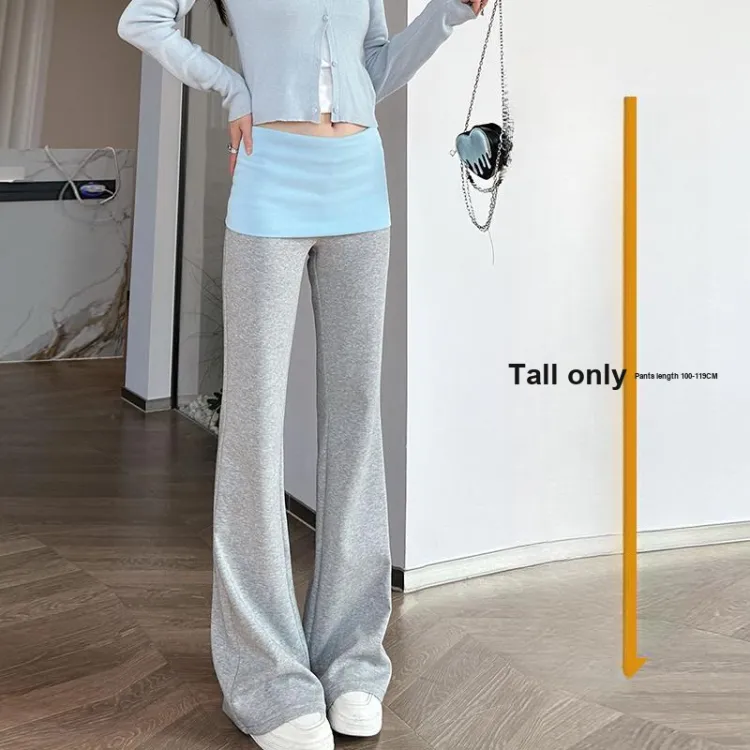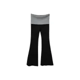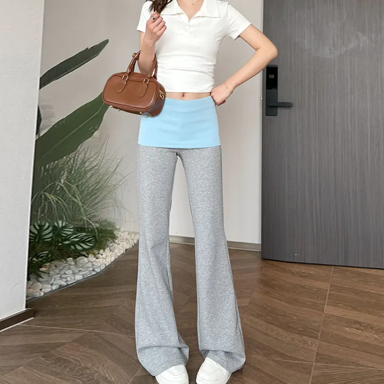 KALULI Весна-осень Лето Цветовой блок Повседневные брюки Обычный Высокий Удлиненная длина Женские Черный Серый Синий Цветовой блок