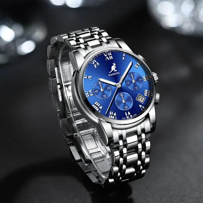 KANGOL Кварцевый механизм стальной ремешок мужские часы черный циферблат
