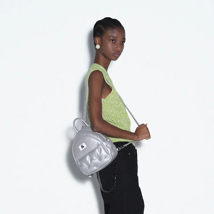 Karkki Lambskin Portable Single Shoulder Backpack Medium Women's Silver