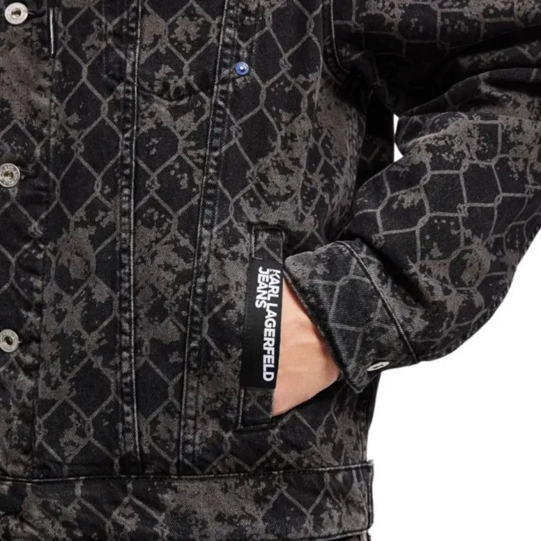 KARL LAGERFELD Street Travel SS25 Denim Jacket Men's Dark Gray