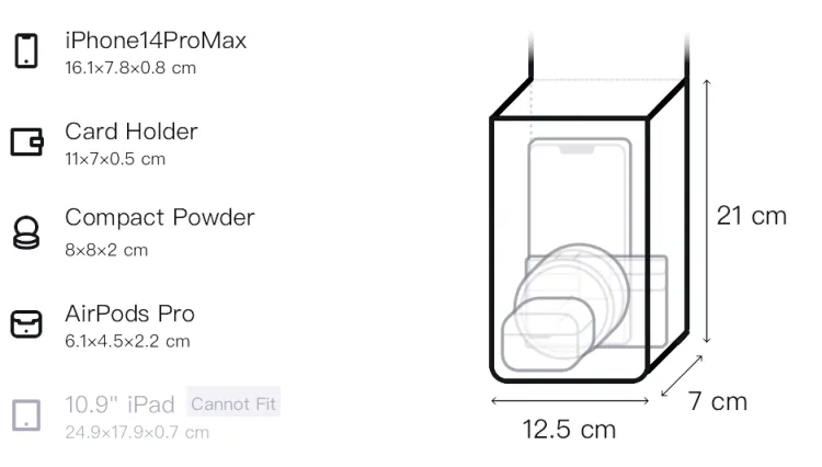 Длина 12,5 см * Ширина 7 см * Высота 21 см