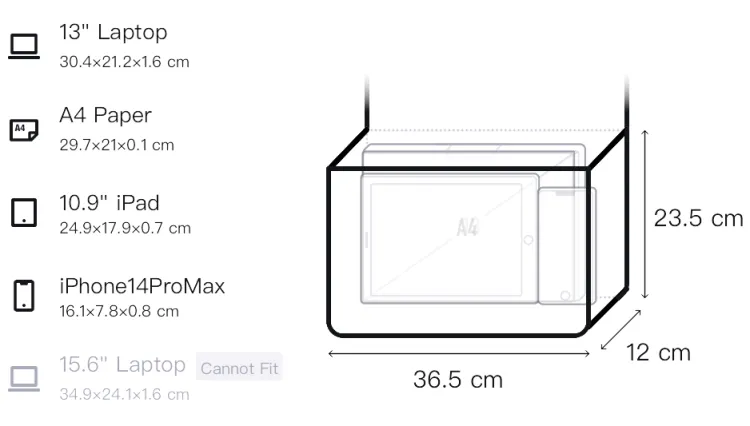 Д36,5*Ш12*В23,5 см