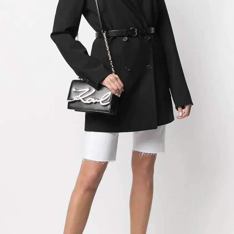 KARL LAGERFELD Кожа Плечевая Сумка Маленькая Женская Черная