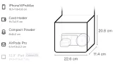 Нижняя длина 23,77 см, верхние размеры: длина 22,56 см, ширина 11,38 см, высота 20,83 см