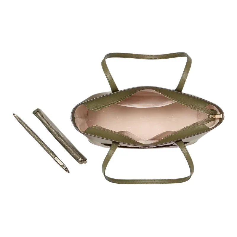 Kate Spade Staci Крестообразная текстура PVC Тоут Сумка Сумка для покупок Сумка Сумка через плечо Большая Женская Морская Зеленая