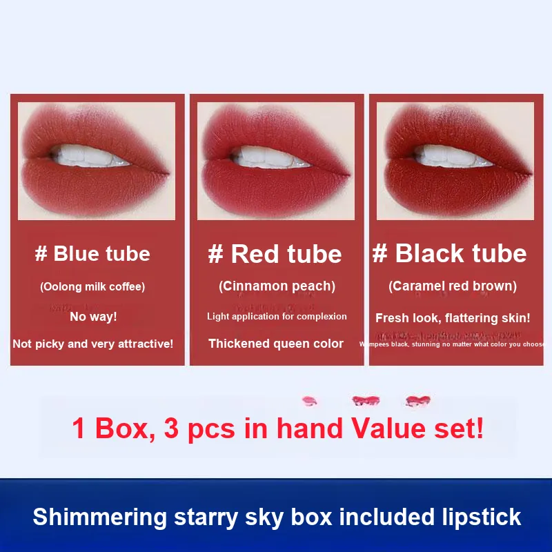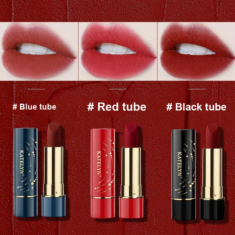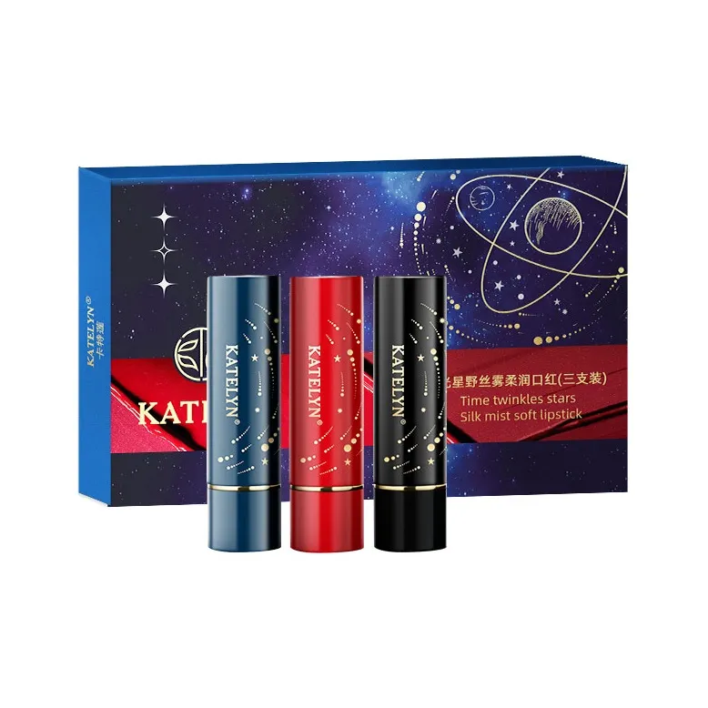 KATELYN Starlit Flowing Свет Велюр Помады Матовый с Матовая Текстура Легко Смесь Естественный Тон 3 Упаковки