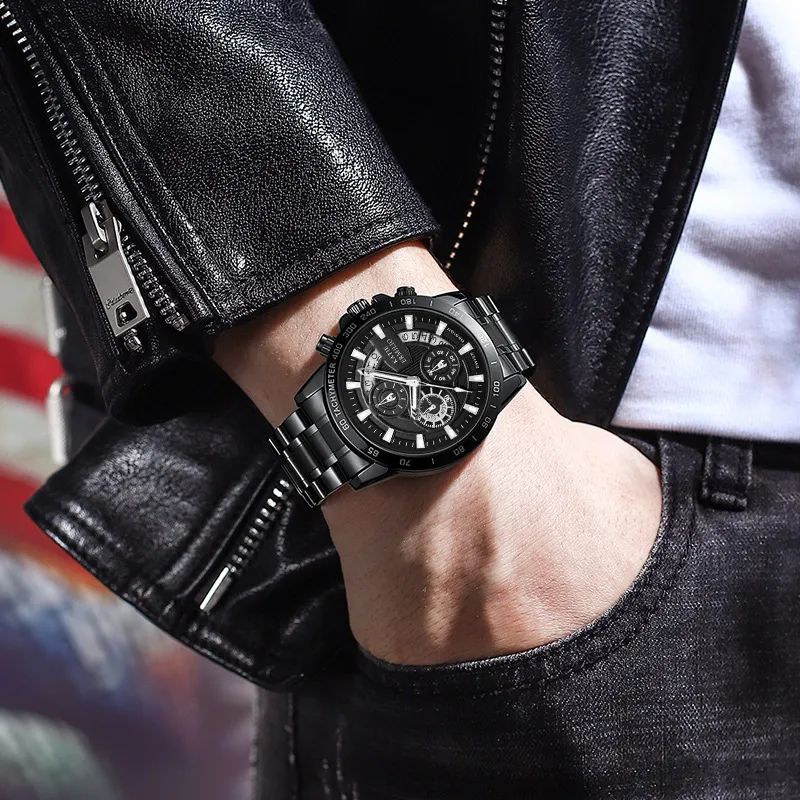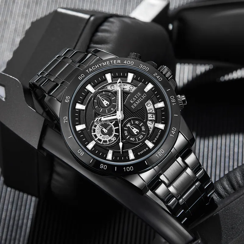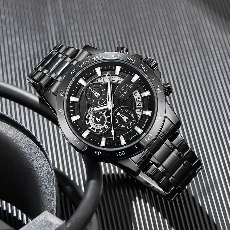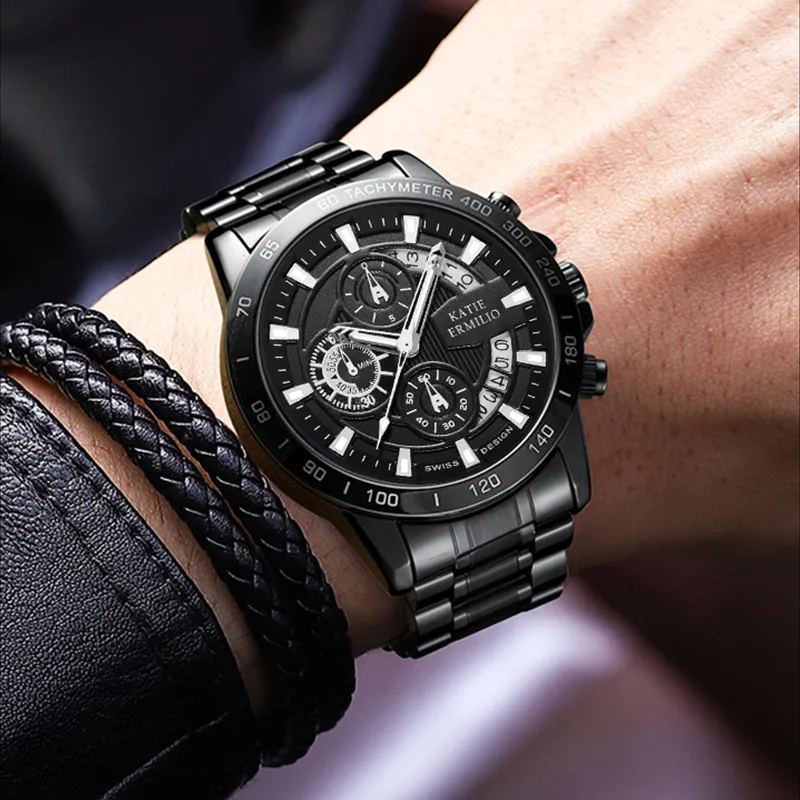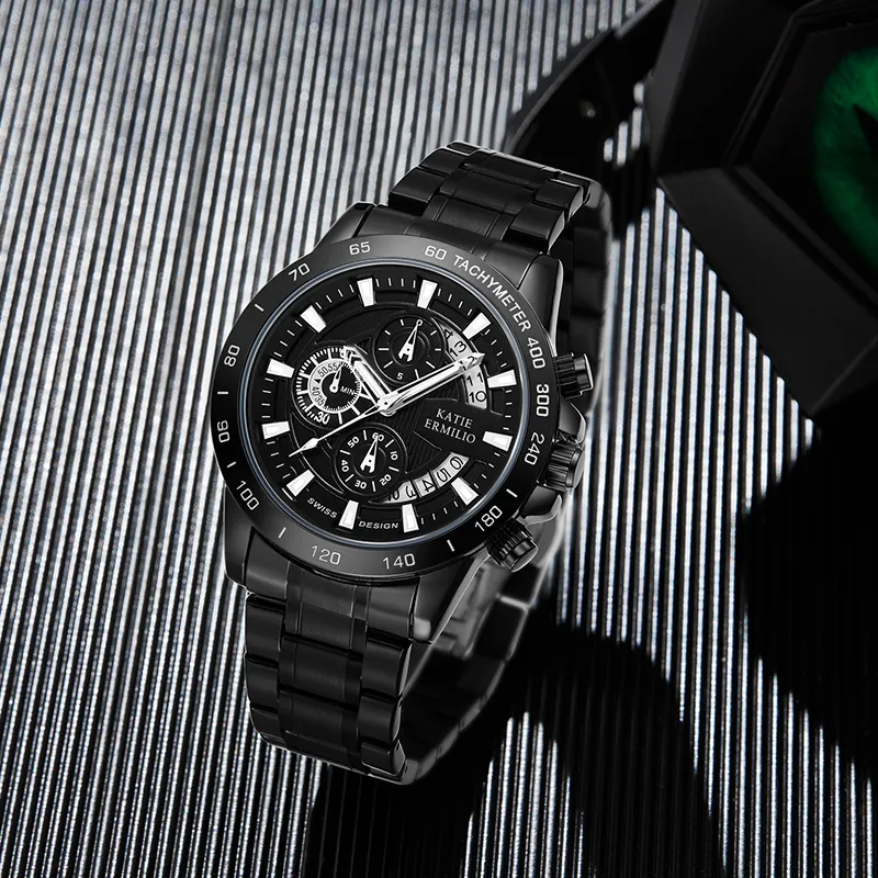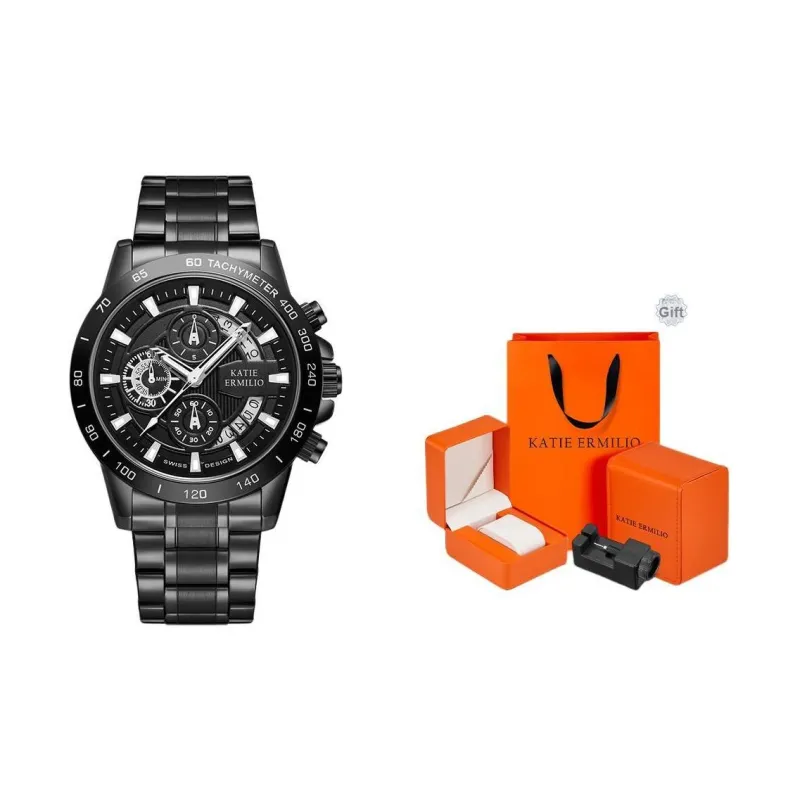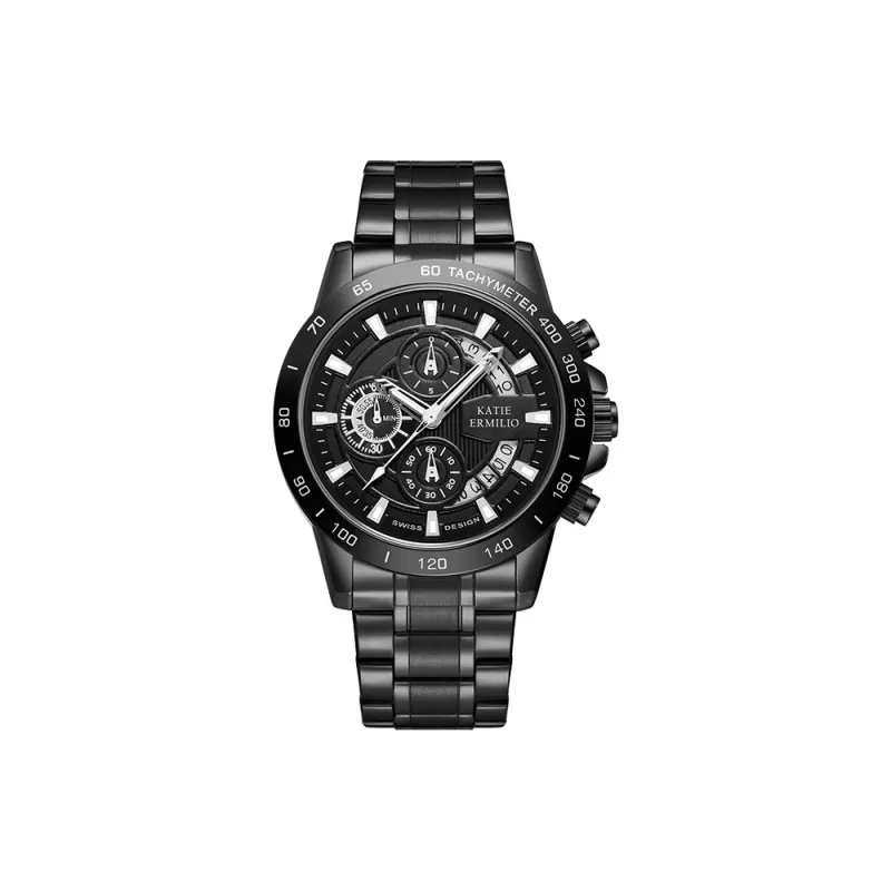 Katie Ermilio Кварцевый механизм Черный циферблат Мужские часы