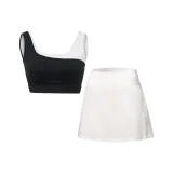 Топ Ткань: 82,5% полиэстер, 17,5% эластан; Рекомендуемая чашка бюстгальтера: 95% полиамид, 5% эластан; Короткая Юбка: Ткань A: 88% полиамид, 12% эластан; Ткань B: 77% полиэстер, 23% эластан; Ткань C: 92% полиэстер, 8% эластан