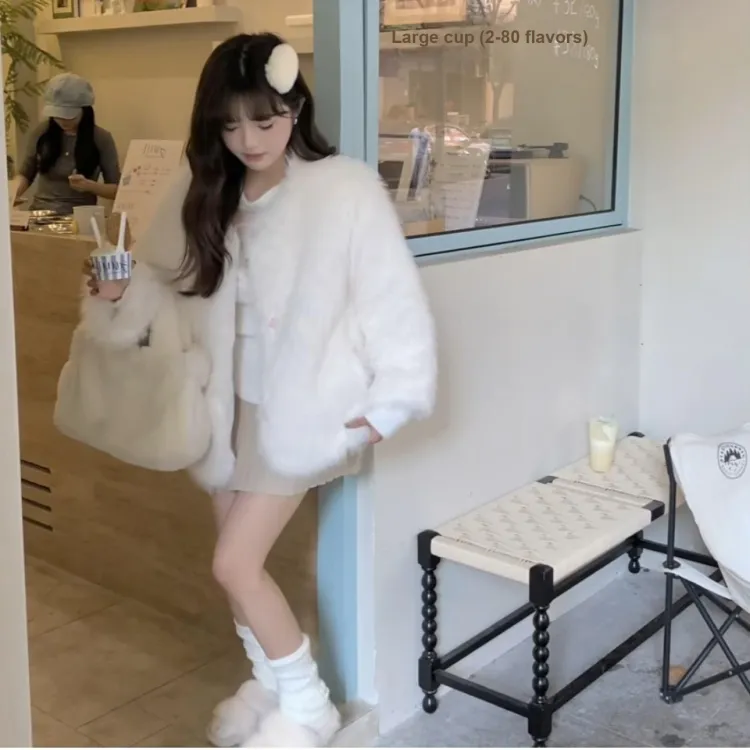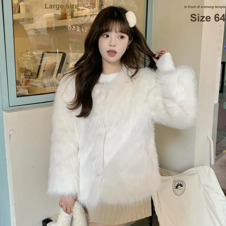 Белое меховое пальто