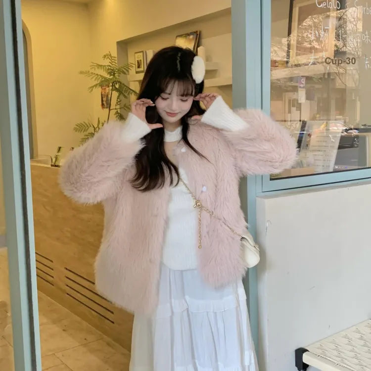 Цвет:Розовое пальто из меха
