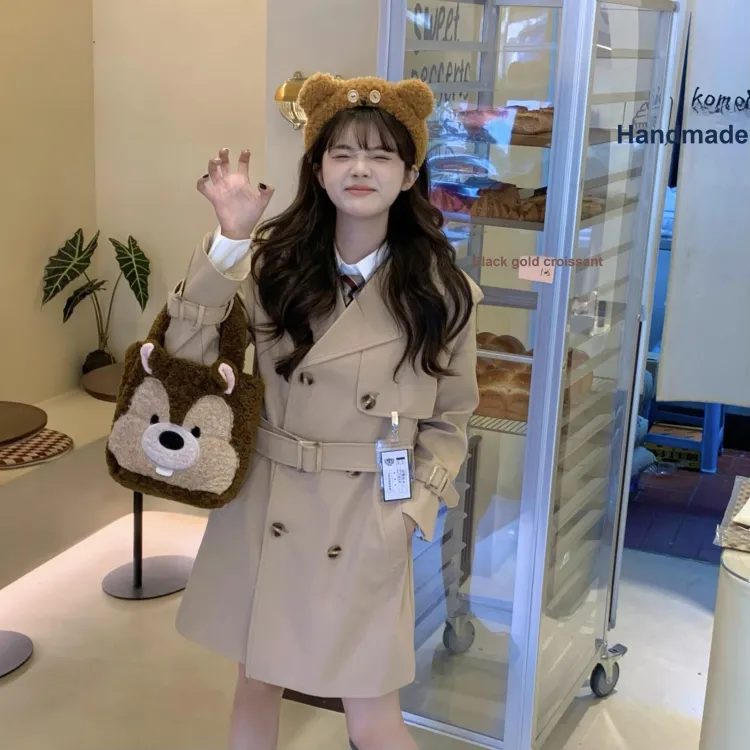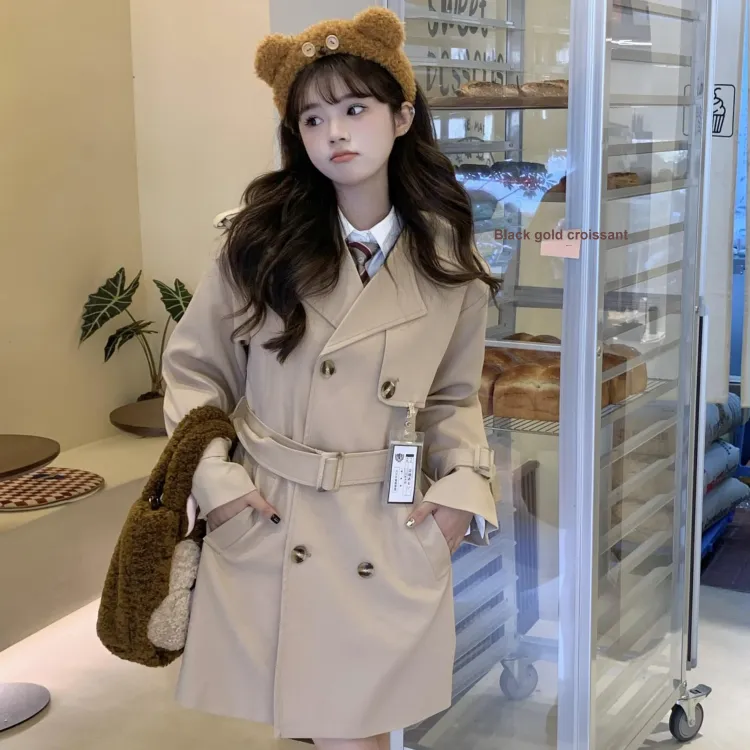 Хаки тренчкот большой Полный комплект (Хаки значок свитер + Желтый значок жилет + Белая рубашка с длинным рукавом и обхватом талии + Коричневая плиссированная юбка в коробке + Красный и белый галстук)