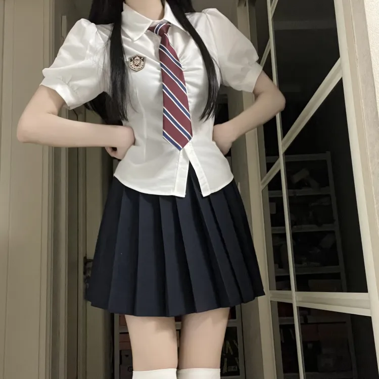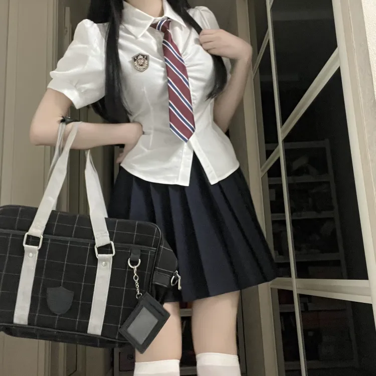 Set из трех предметов (Белая школьная рубашка + Черная плиссированная юбка + Галстук)