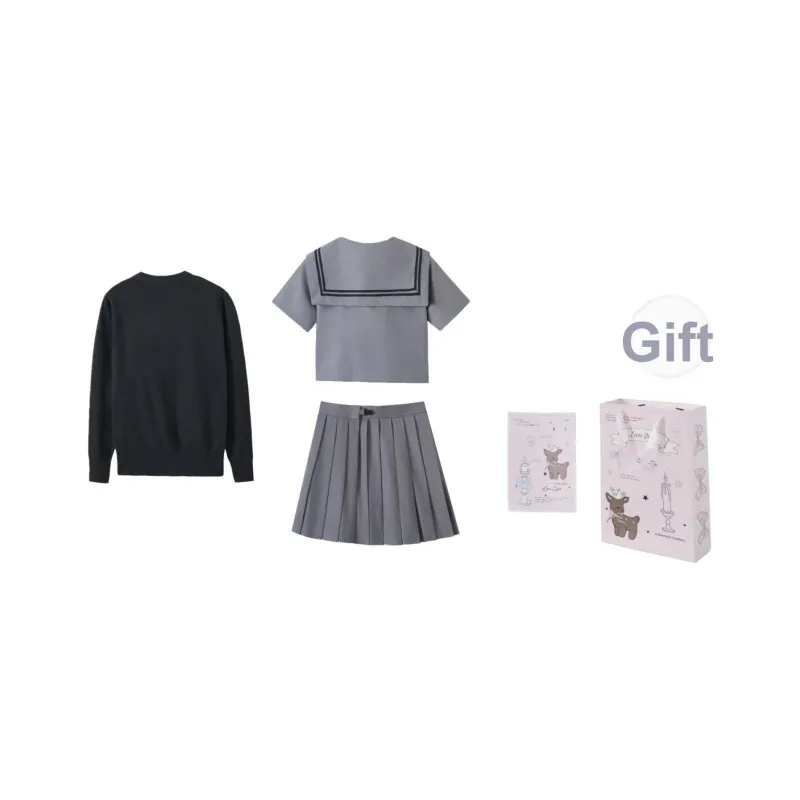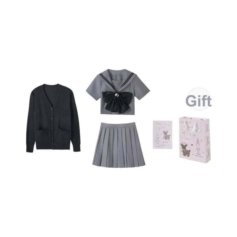 Цвет:Серый матроска трехкомпонентный комплект (серый матроска комплект одежды + темно-серый кардиган) с бумажным пакетом для карты