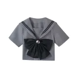 Серый матроска трехкомпонентный комплект (серый матроска комплект одежды + темно-серый кардиган) с бумажным пакетом для карты