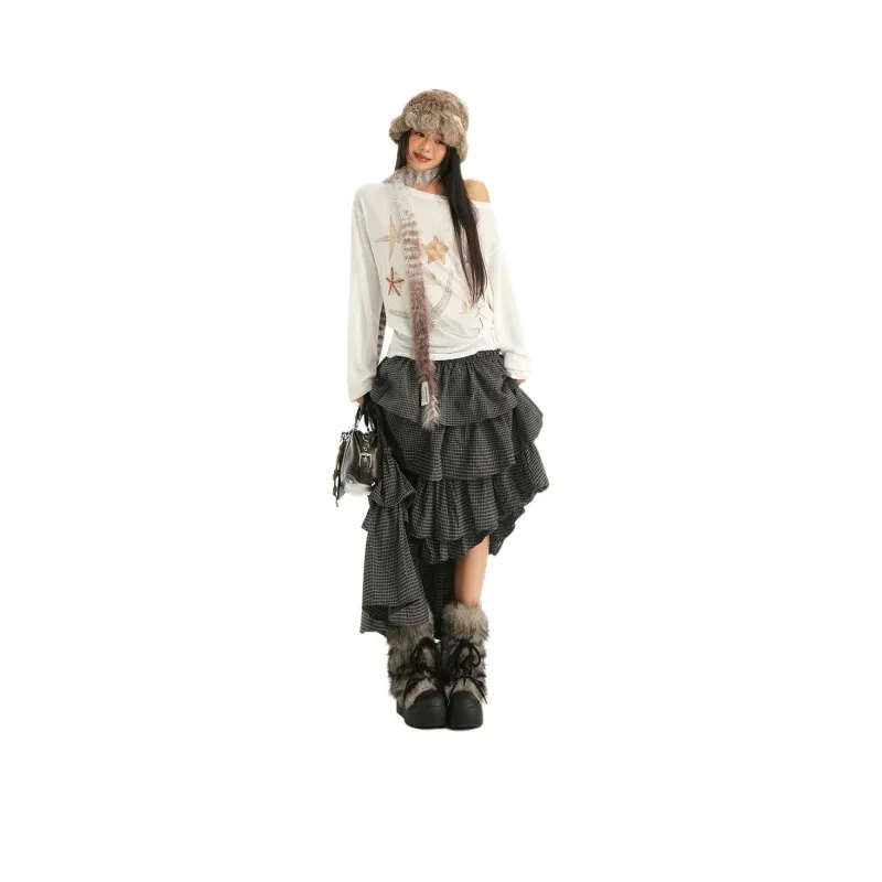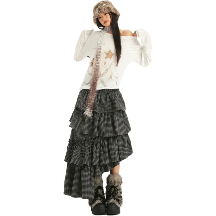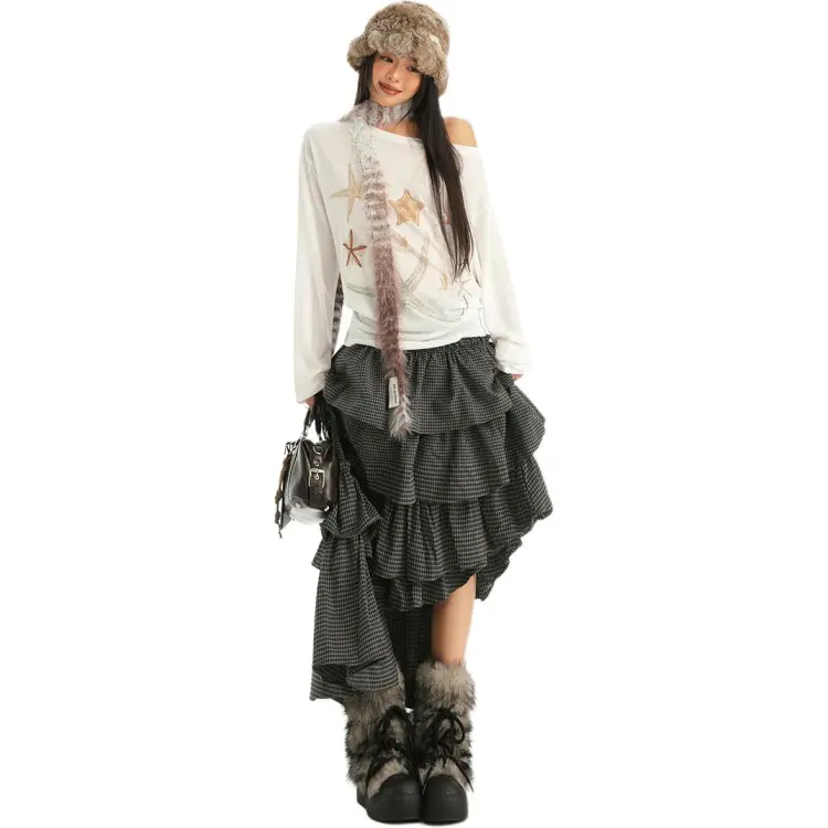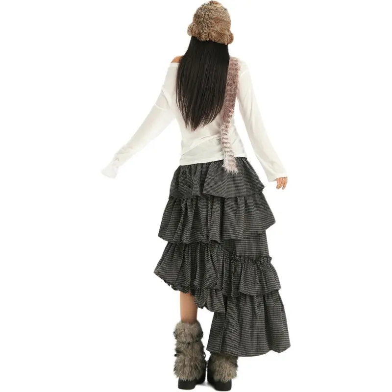 Цвет:Черная маленькая пледовая юбка