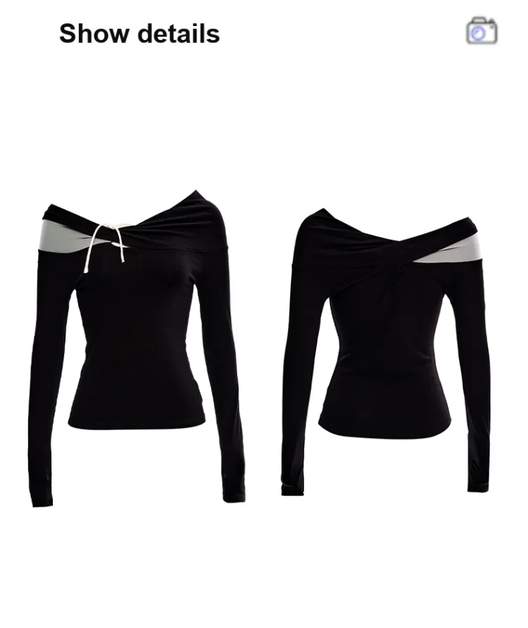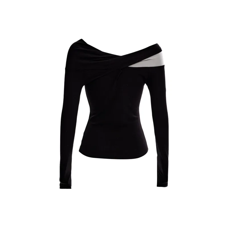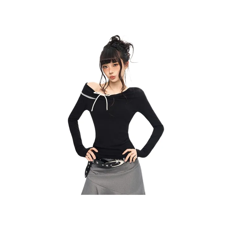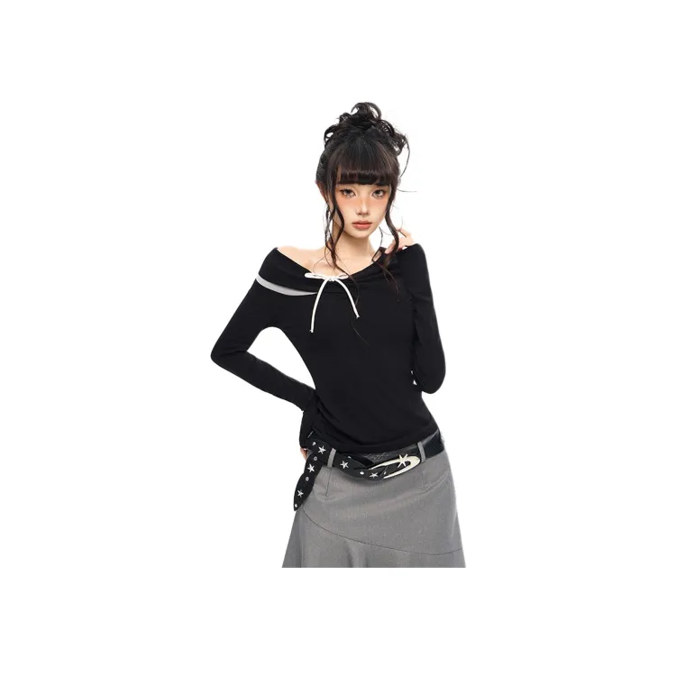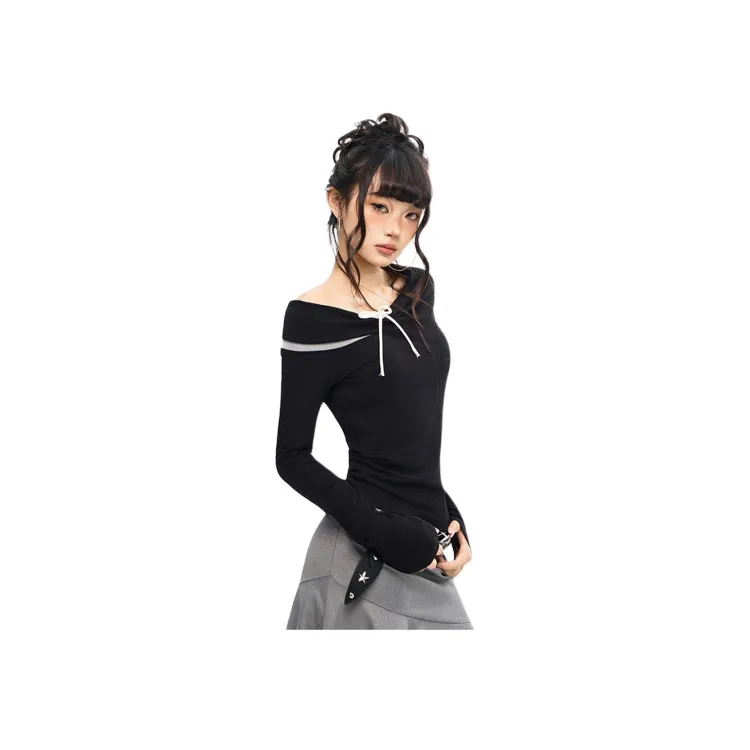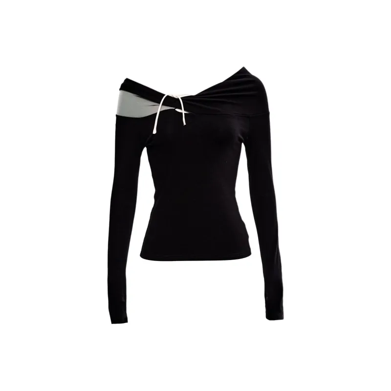 KAZHALIN Таинственный черный Длинный рукав Женская футболка