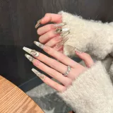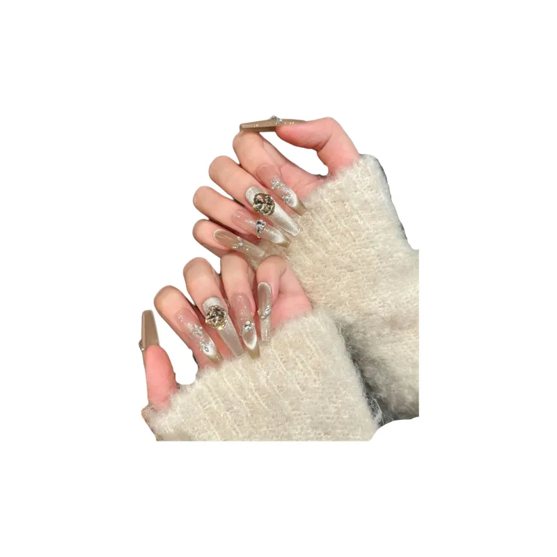 KDOW Лето Сверкающий Кошачий глаз Роскошь Длинный Handcrafted False Nail Кошачий глаз Nail Art Патч Съемный LED Лампа
