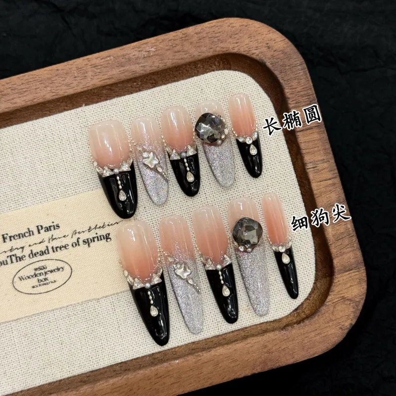 KDOW Темно-ночной Ветер Премиум черный Французский Сверкающий Серый Кошачий глаз Стразы Nail Art Накладные ногти Овал