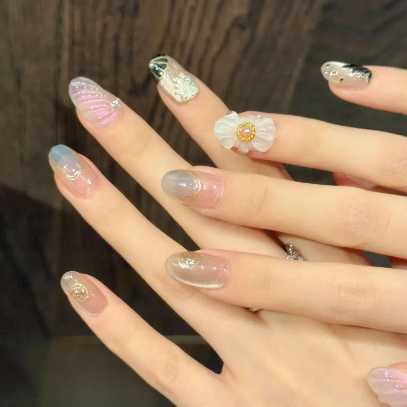 KDOW Перо 3D-эффект Ледяной Цветок Премиум Рука Разрисованный Цветочный Мягкий Весенне-летний Укороченный False Nail