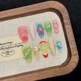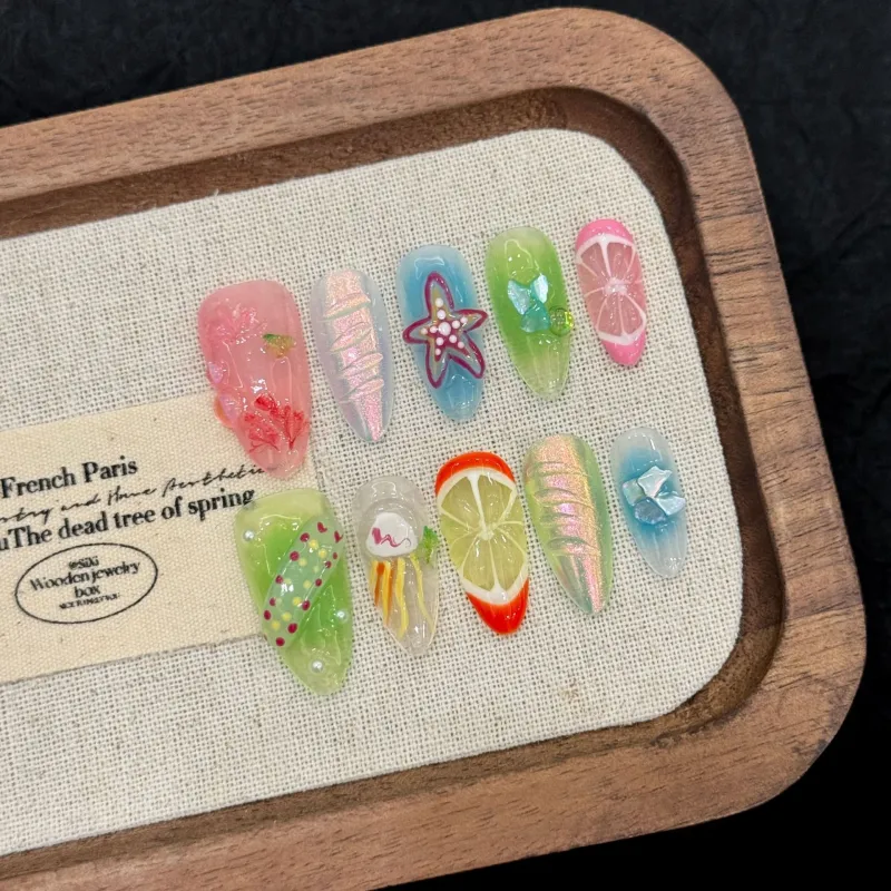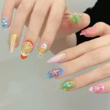 KDOW Многоцветный Пляж Best Selling Summer Beach Многоцветный 3D-эффект Броги Искусственные Ногти Миндаль Смешанный цвет